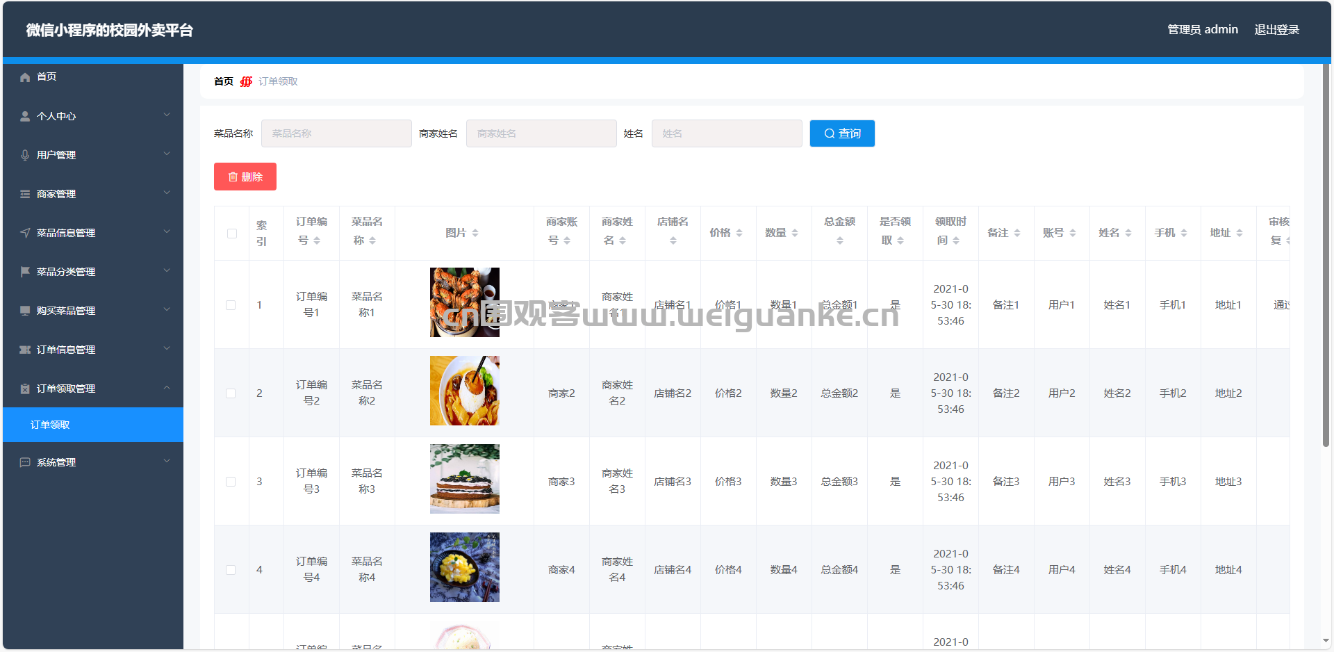 校园外卖平台系统-ssm vue mysql 微信小程序
