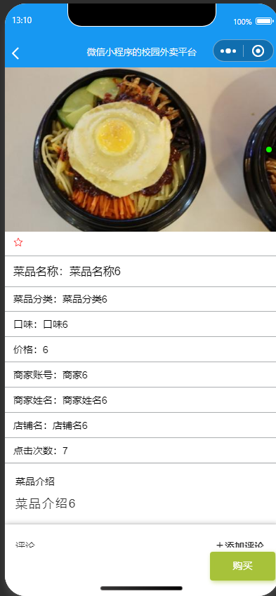 2.菜品信息:查看菜品信息进行购买,收藏操作。