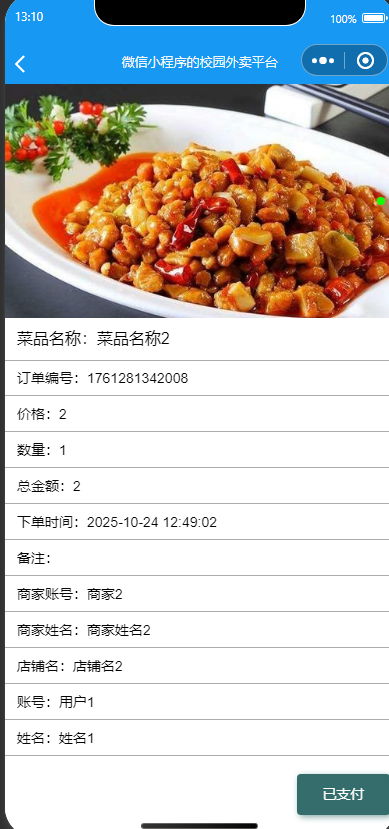 3.购买菜品:查看用户购买的菜品信息进行支付操作。
