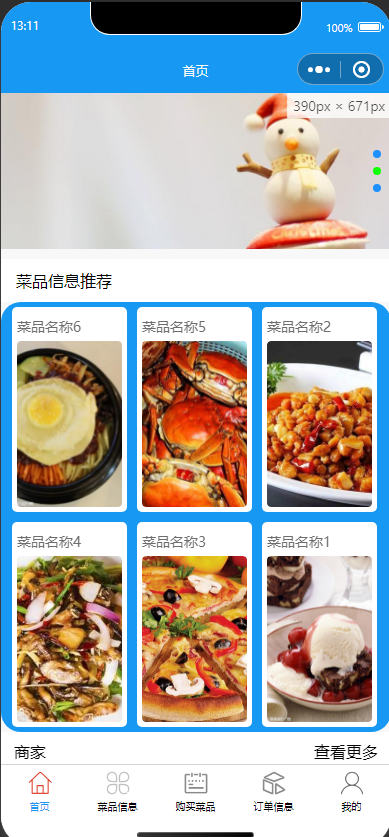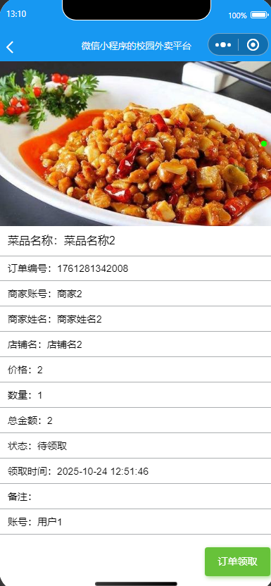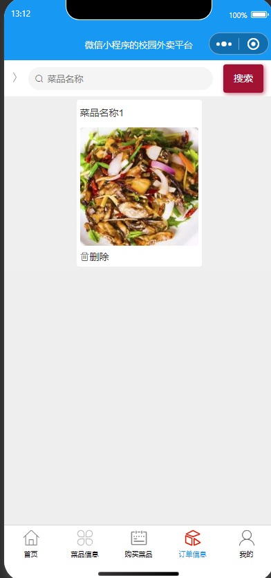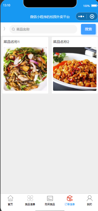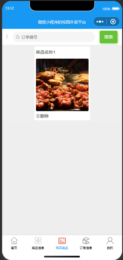 3.购买菜品:查看用户购买自己店铺的菜品信息进行接单操作。