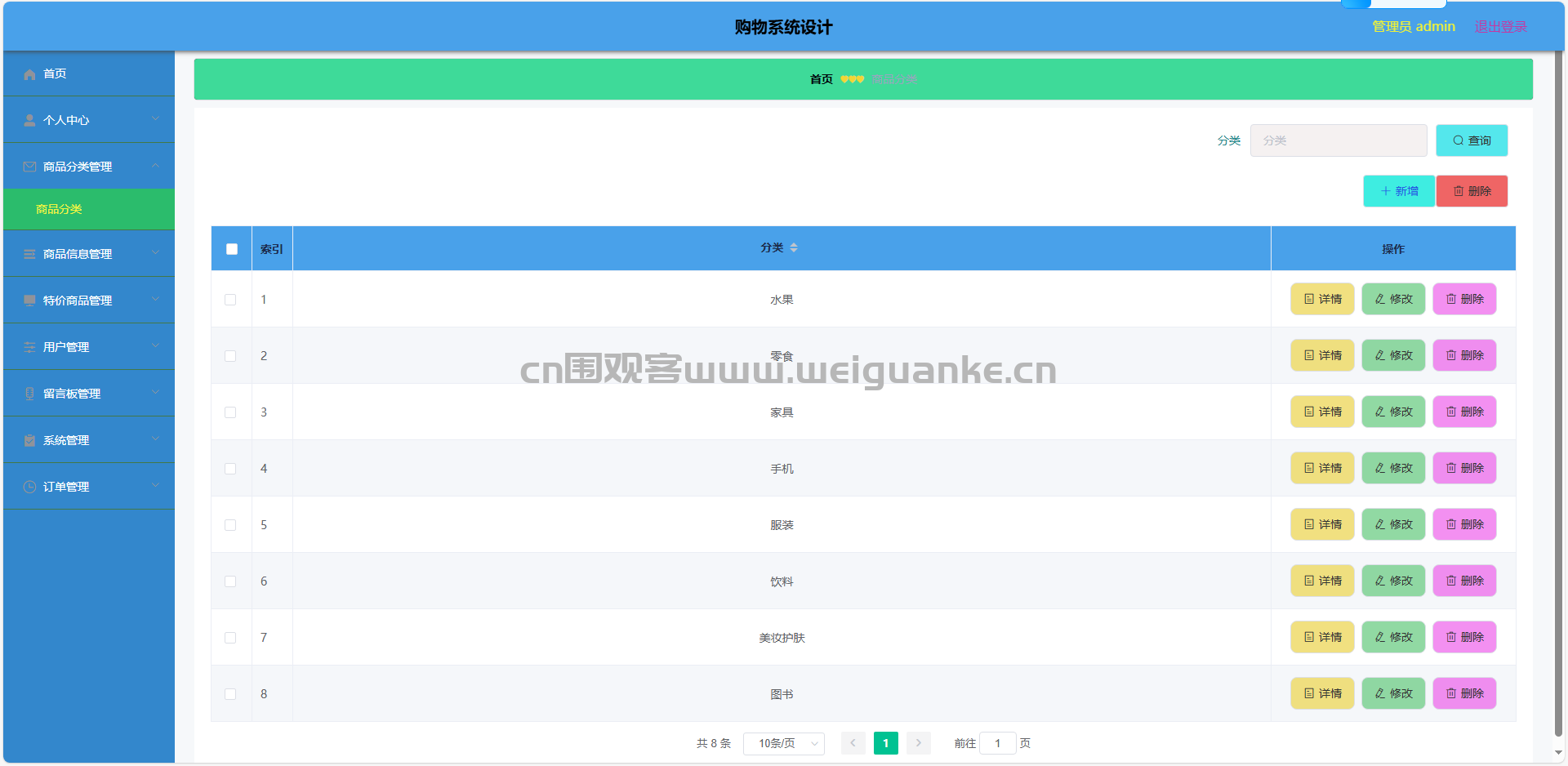 3.商品分类管理:查看、添加、编辑、删除分类信息