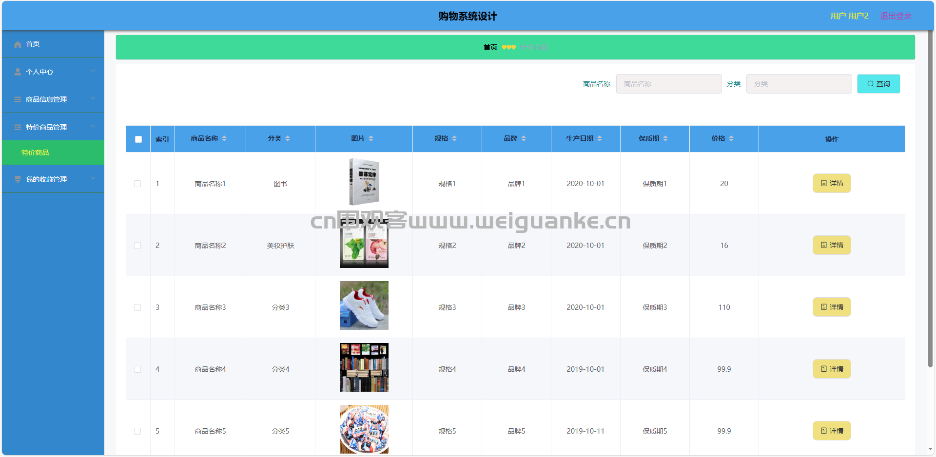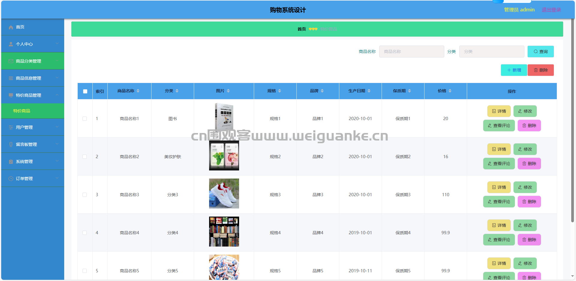 5.特价商品管理:查看、添加、编辑、删除商品信息和评论信息