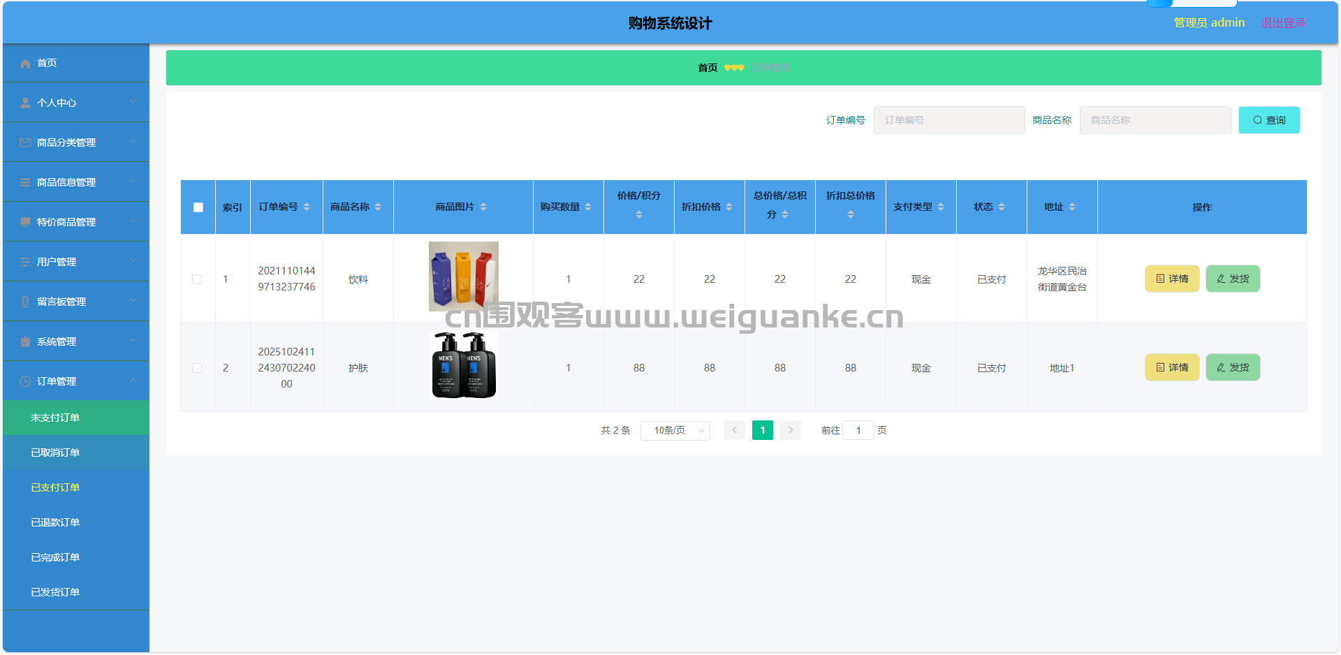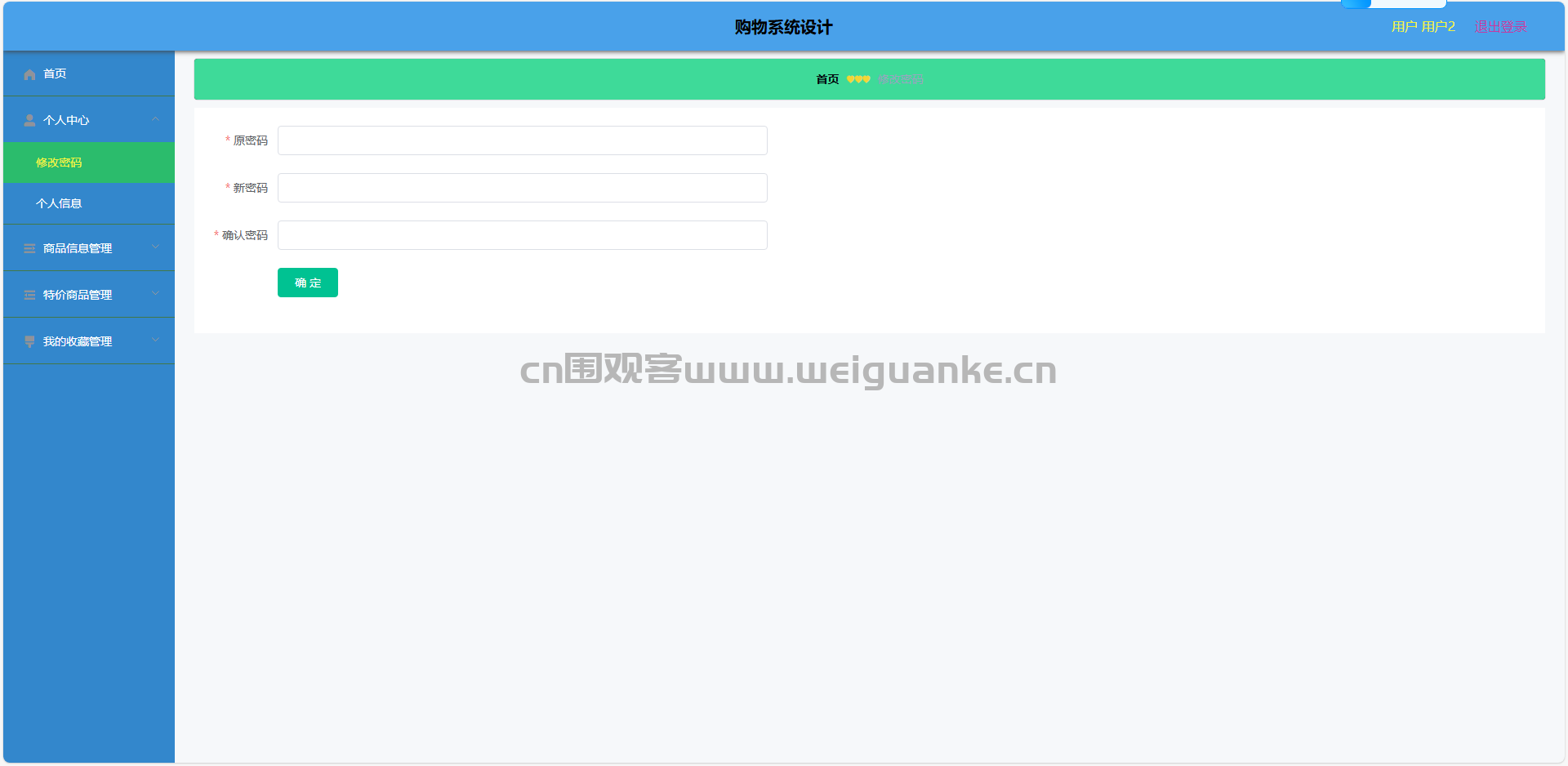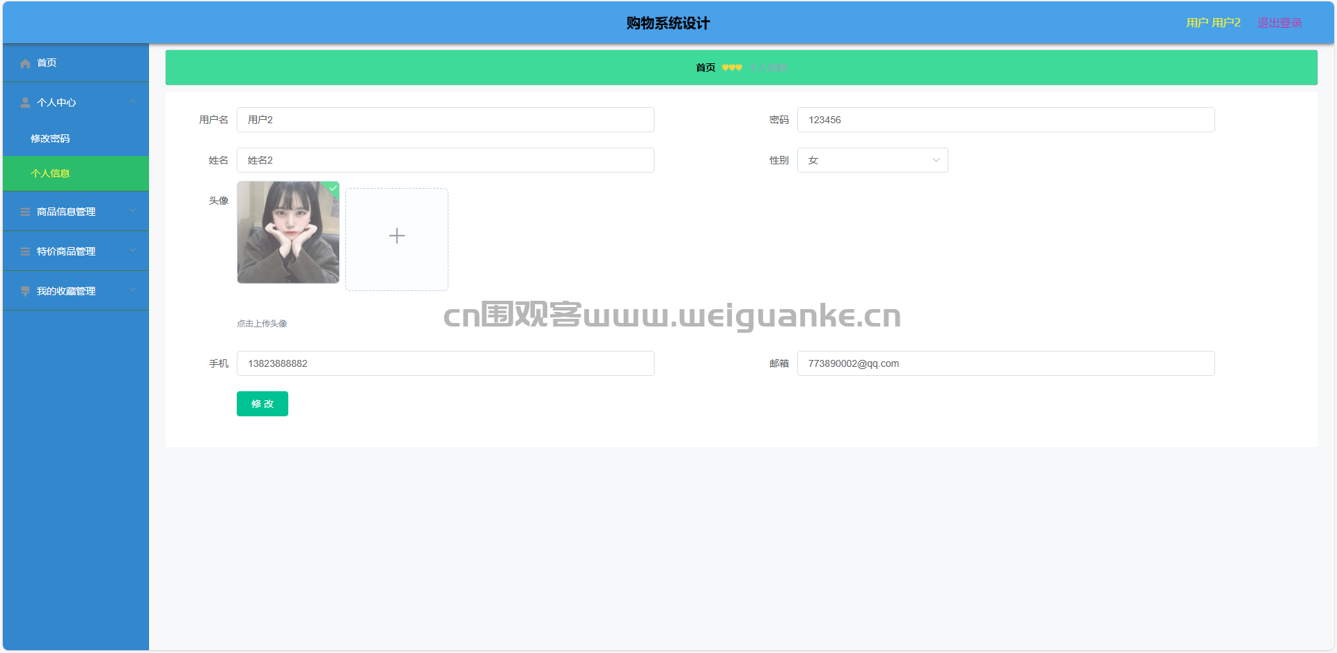 1.个人中心:查看和编辑个人信息,修改登录密码。管理收藏,充值,客服,购物车,订单,留言板信息。