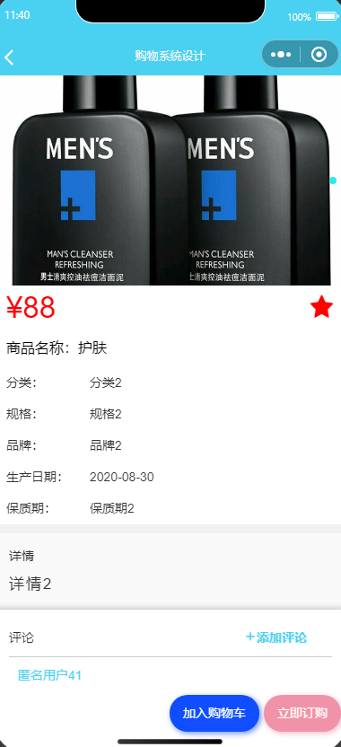 2.商品信息:查看商品信息进行评论,收藏,购买操作。
