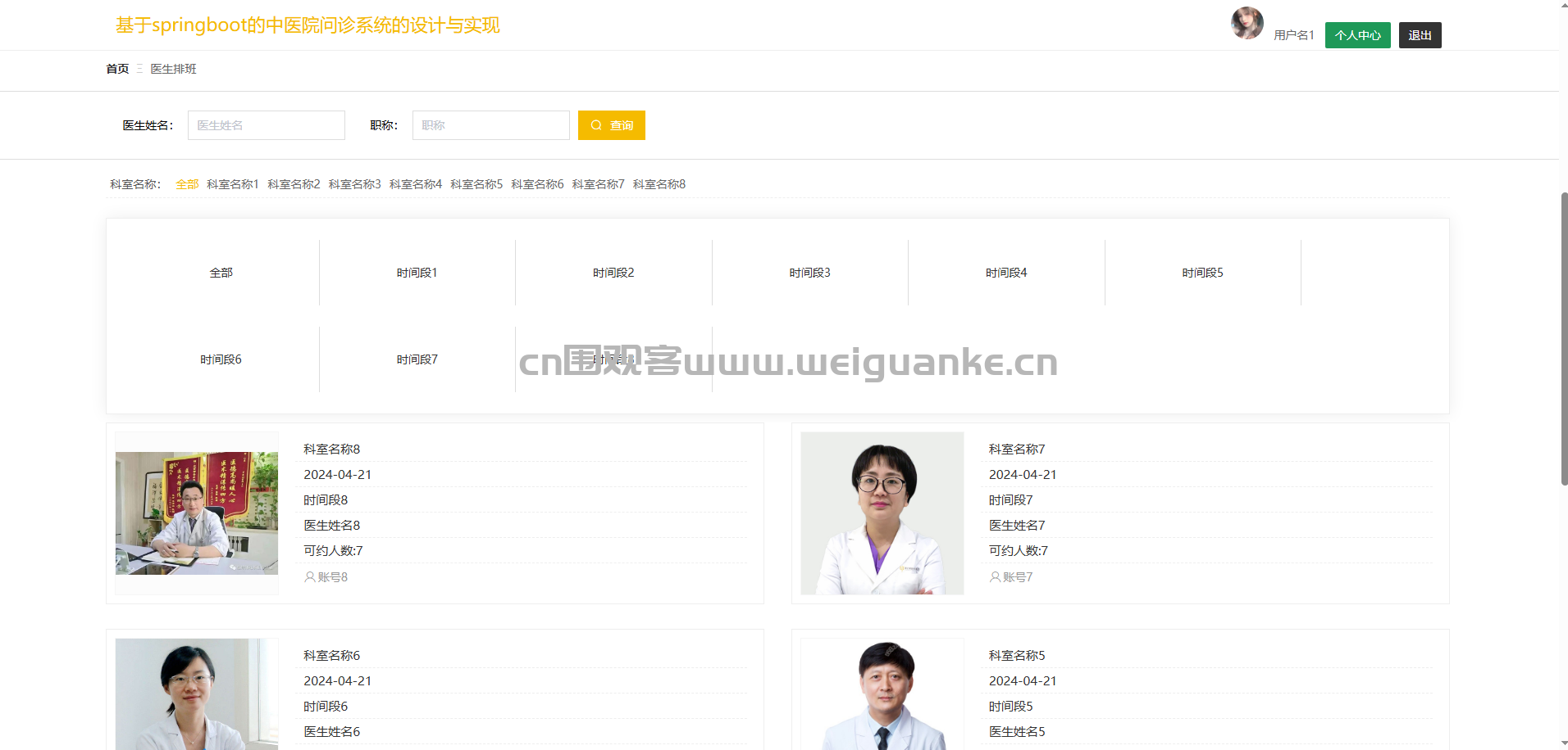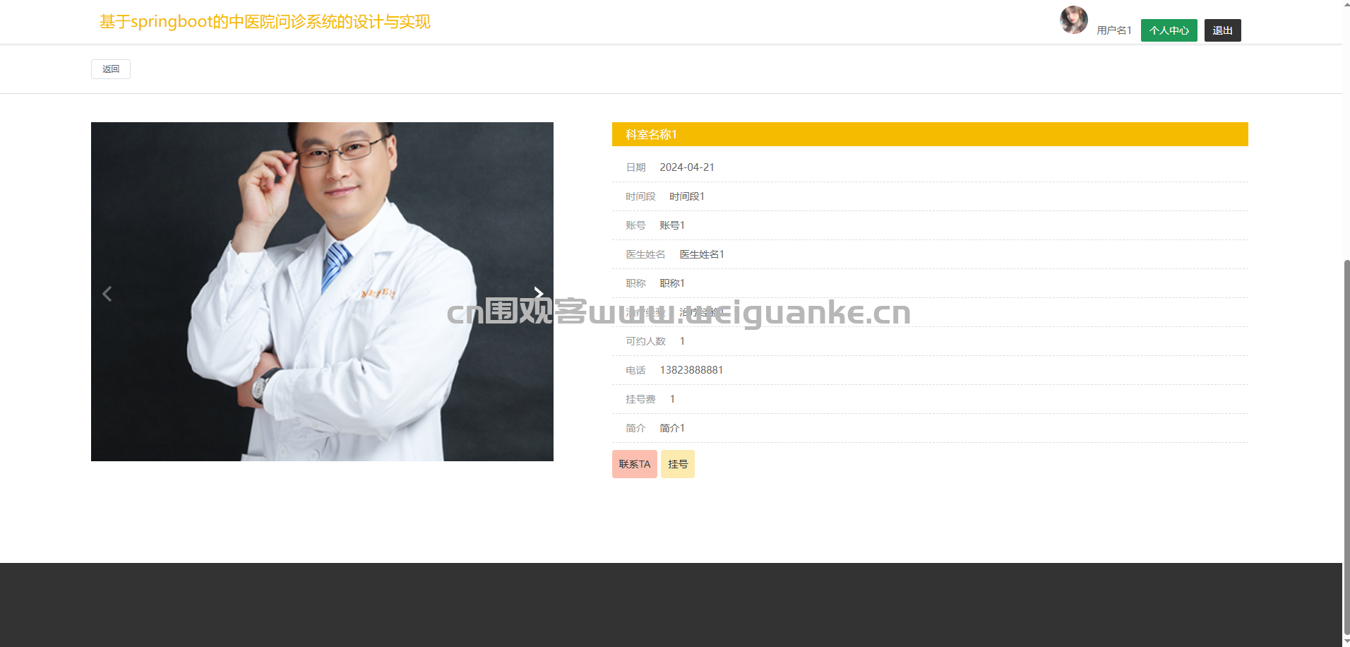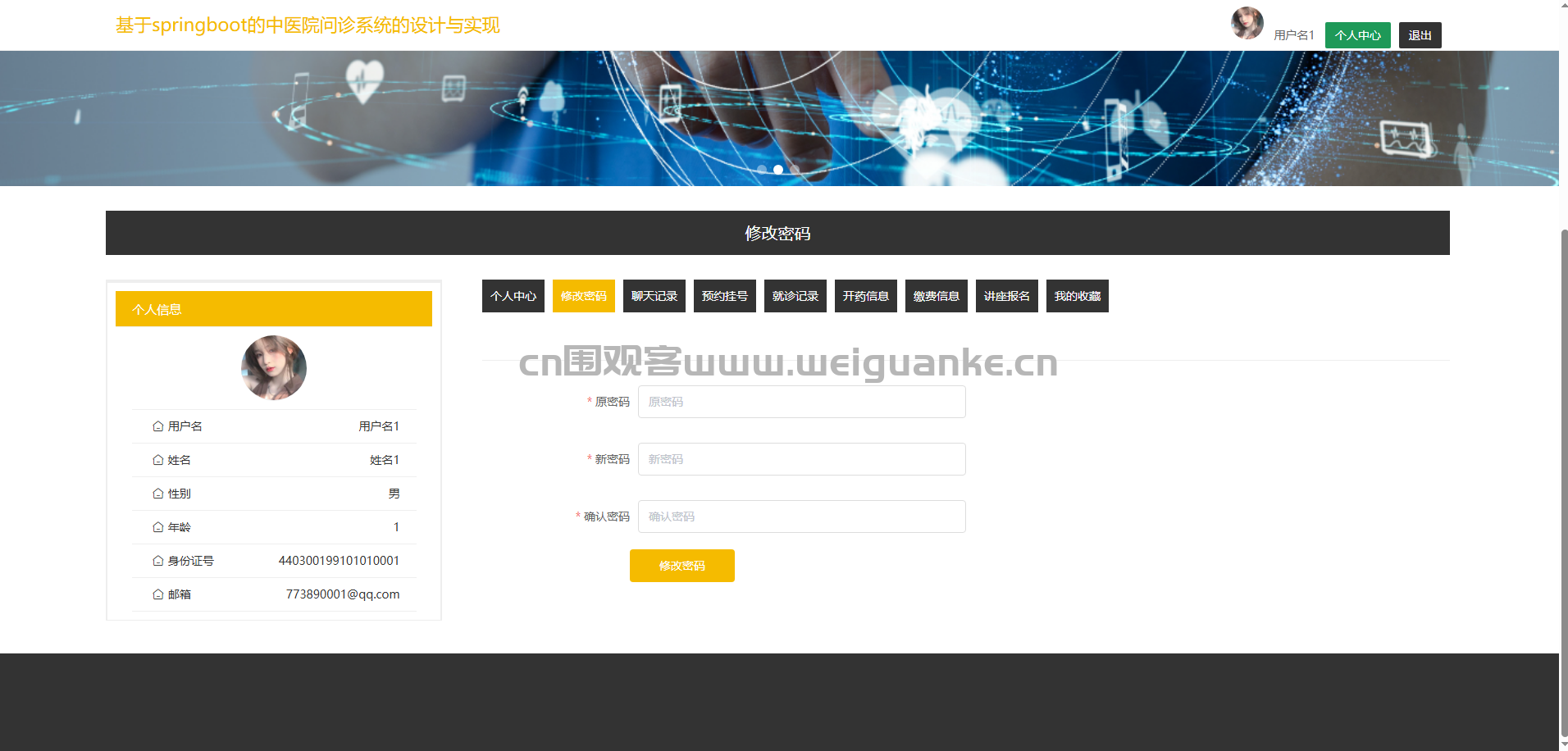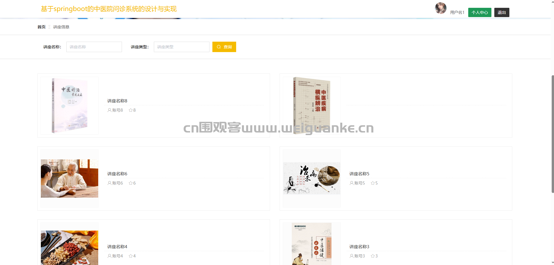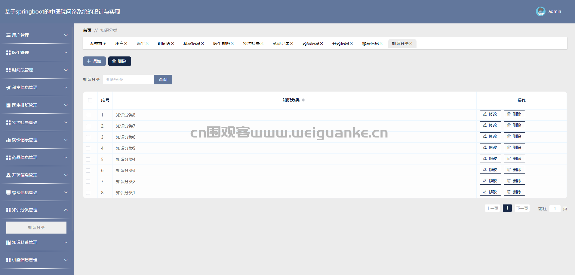 基于SpringBoot+Vue的中医院问诊系统,实现科室排班、预约挂号、在线问诊、电子处方、缴费、知识科普、讲座报名全流程信息化,支持患者、医生、管理员多端协同,提升诊疗效率与服务质量。