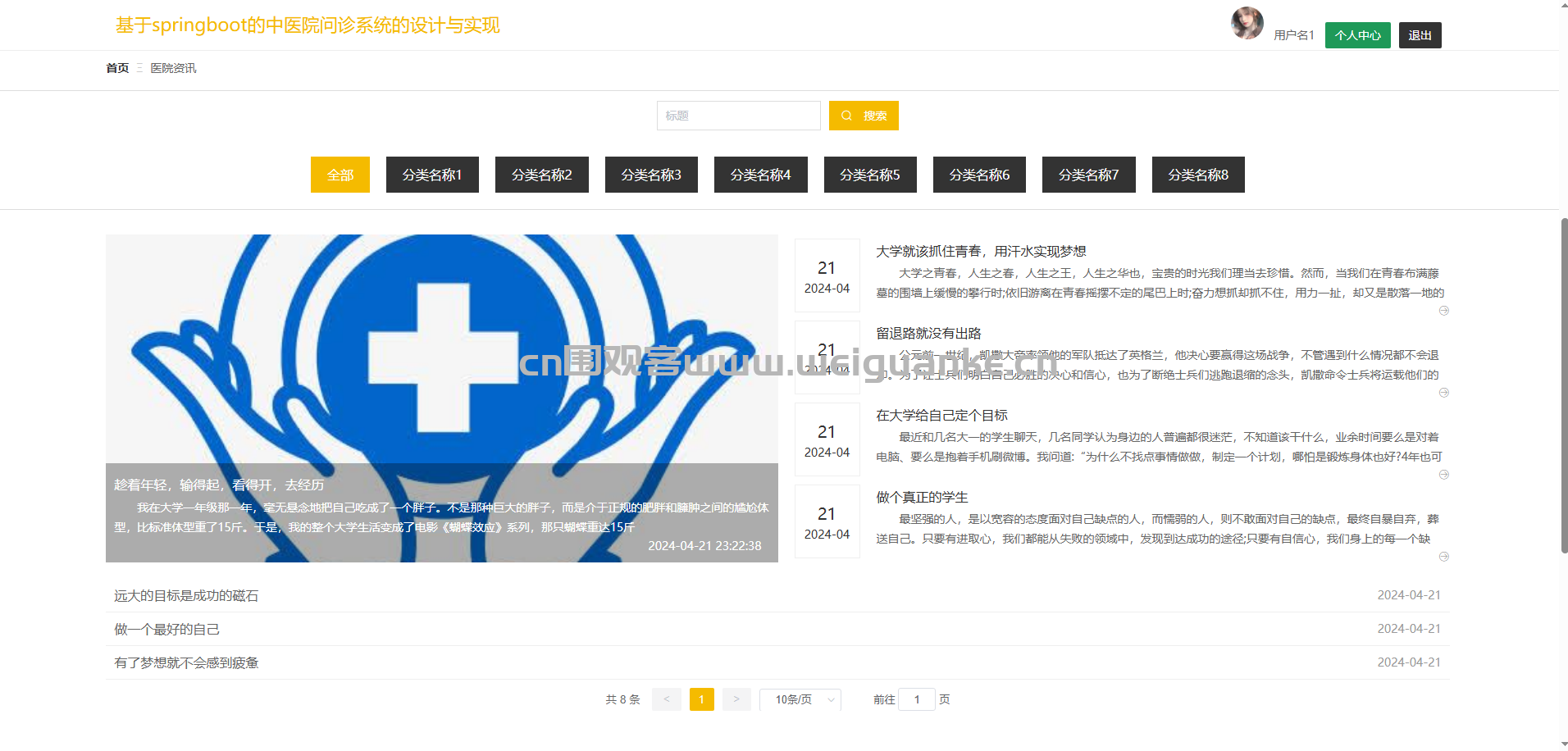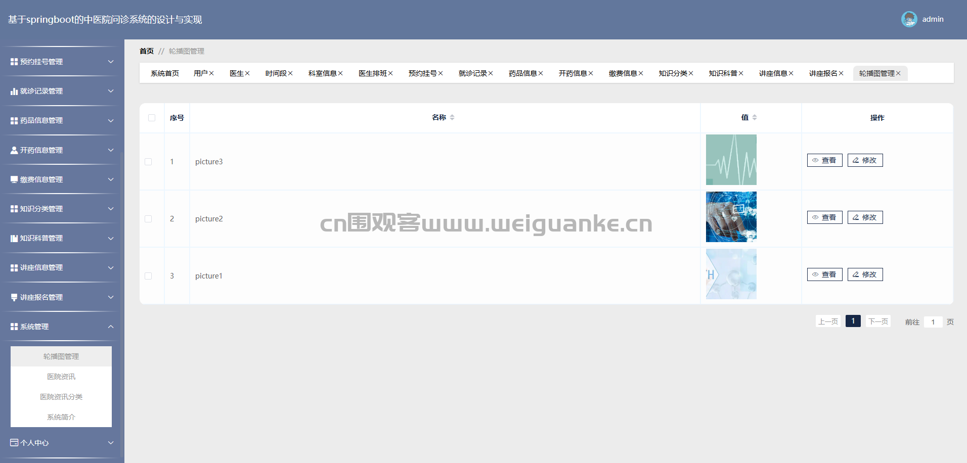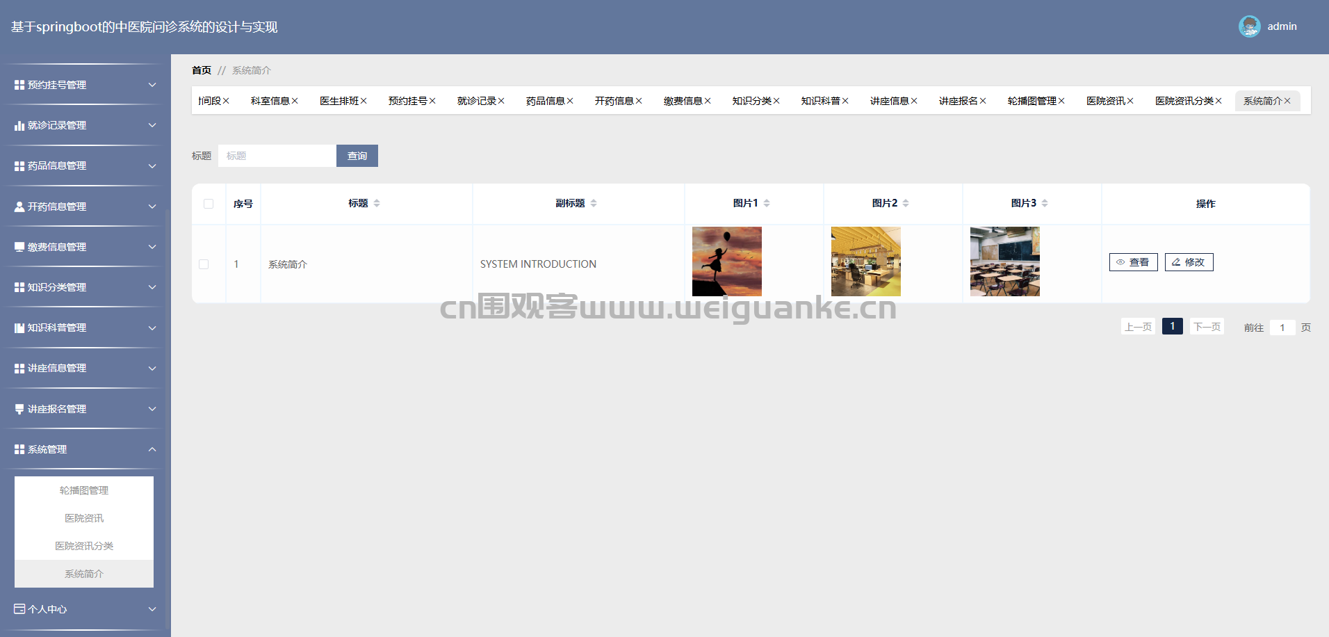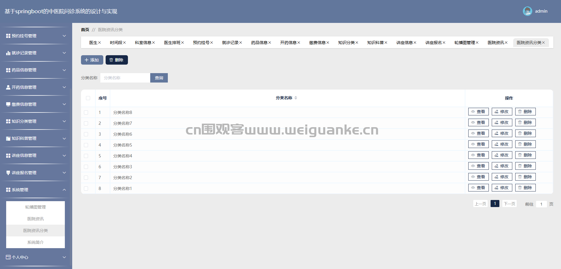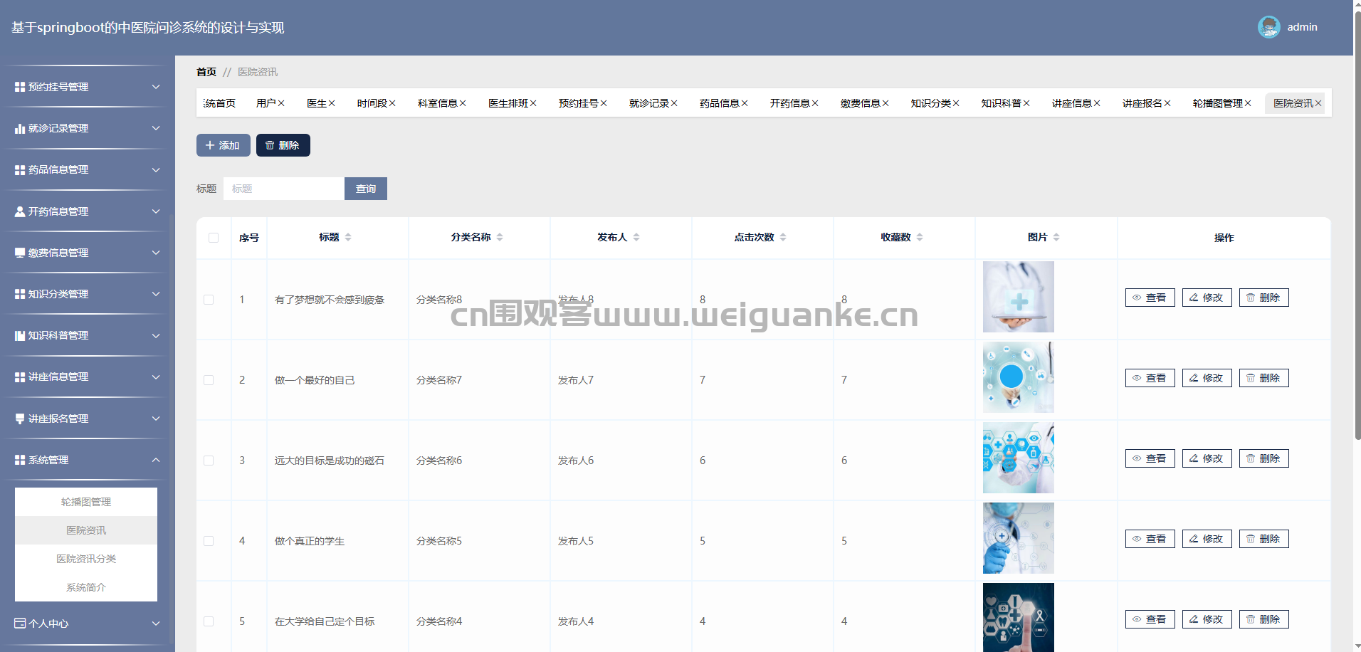 系统管理-医院资讯:新增、修改、删除、查询资讯内容。