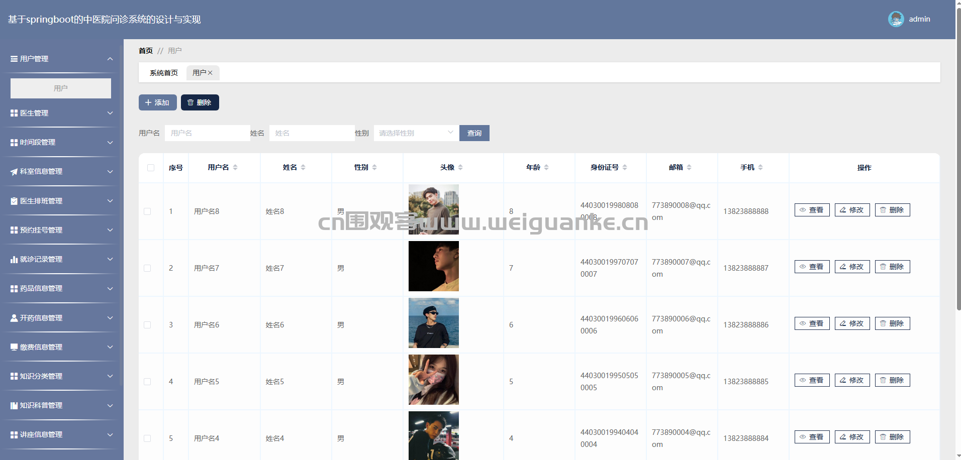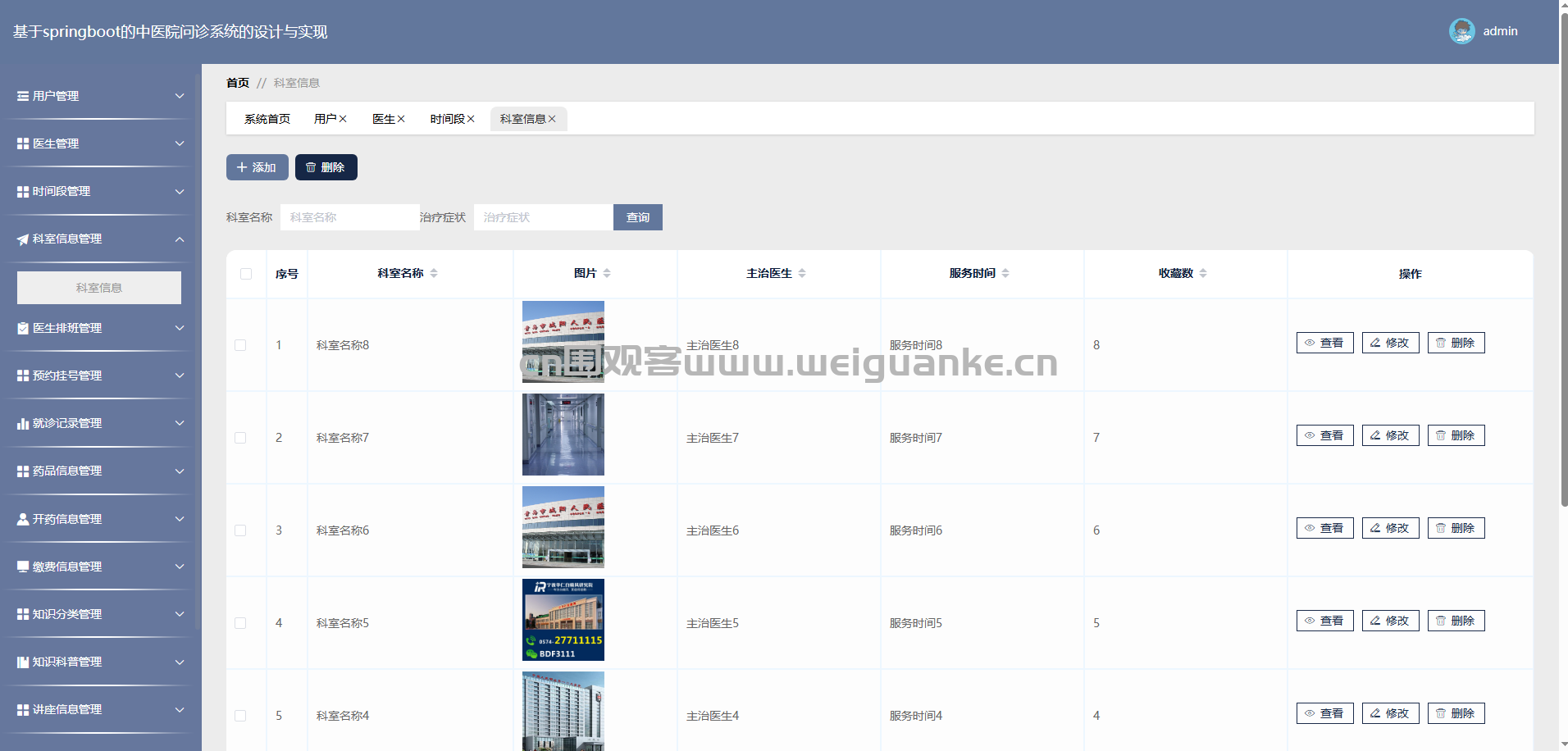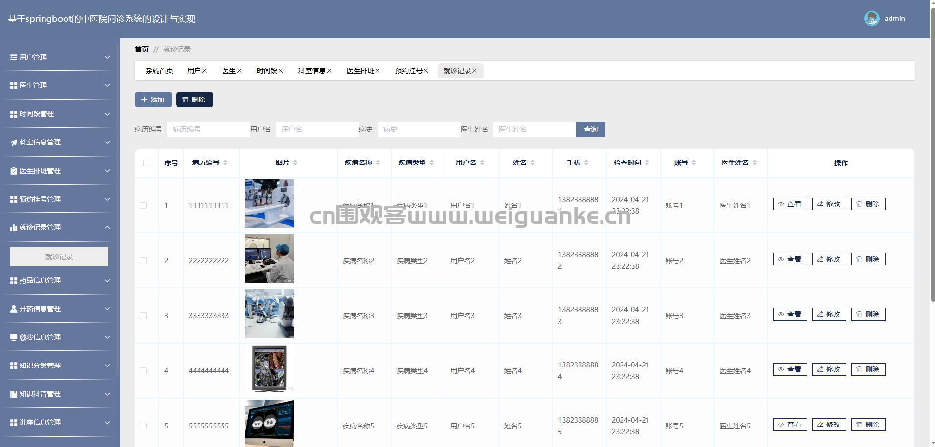 就诊记录管理:新增、修改、删除、查询就诊信息。