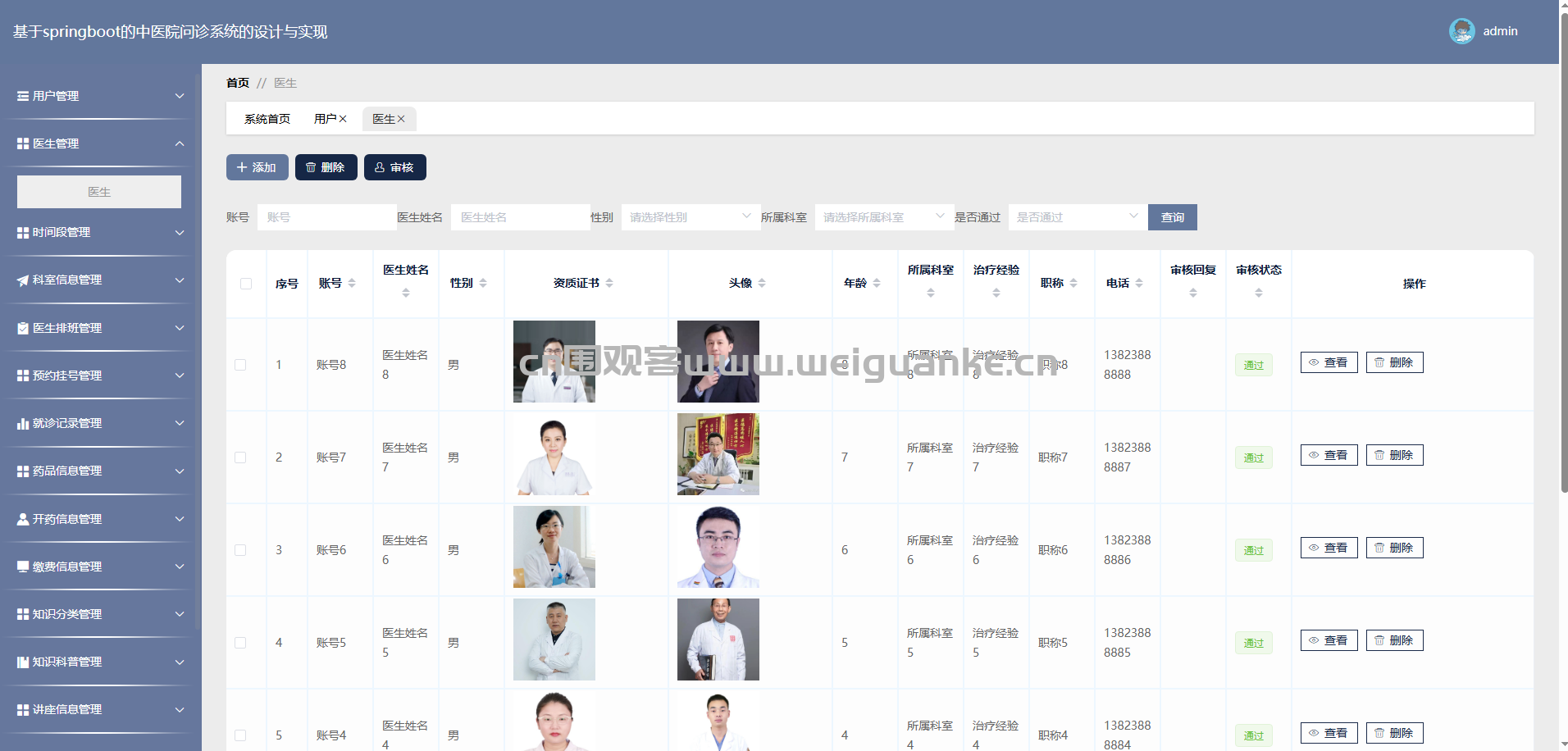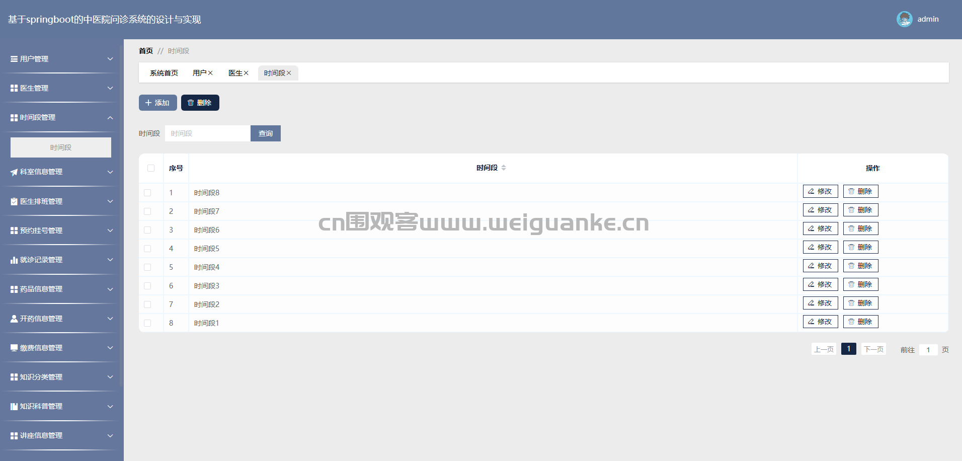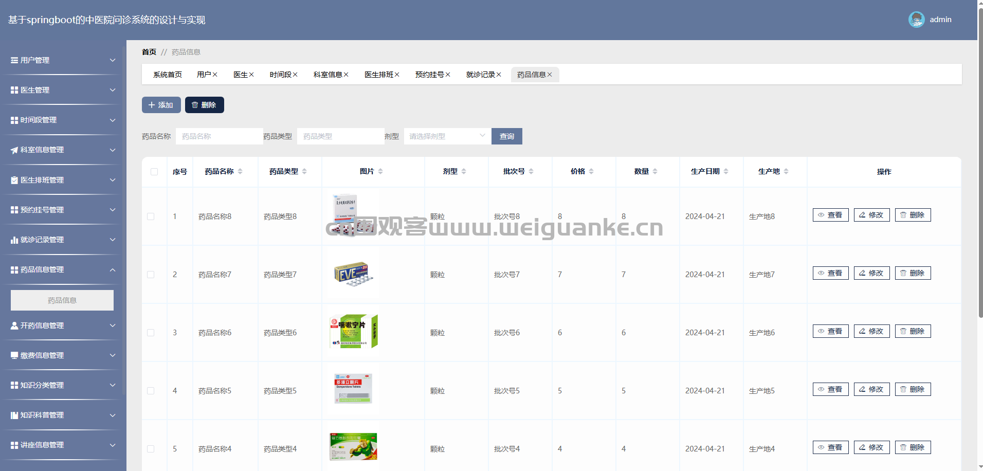 就诊记录管理:新增、修改、删除、查询就诊信息。
