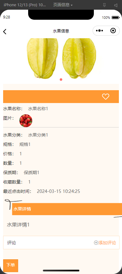 项目描述 基于springboot + vue +微信小程序的线上水果店系统