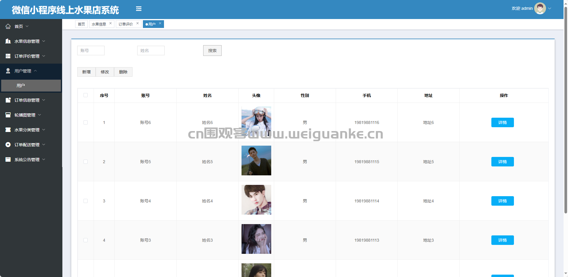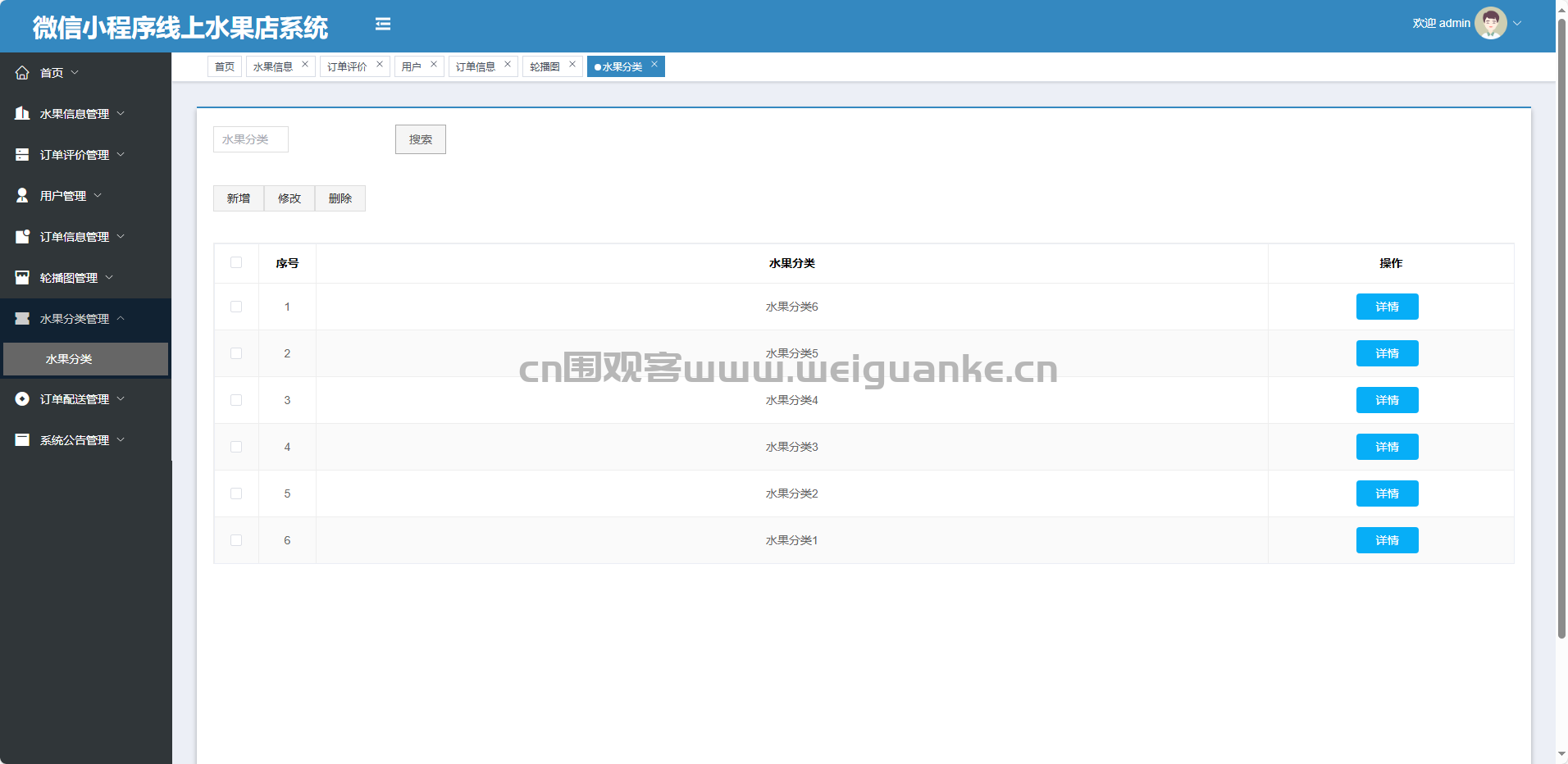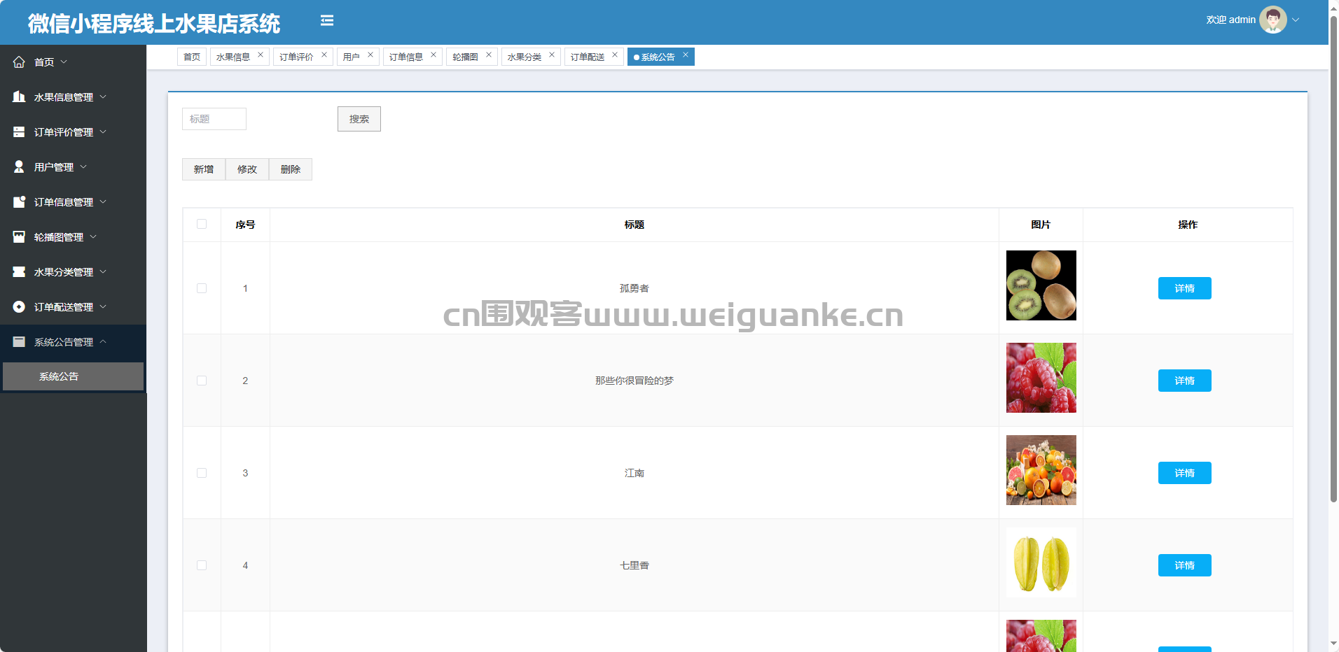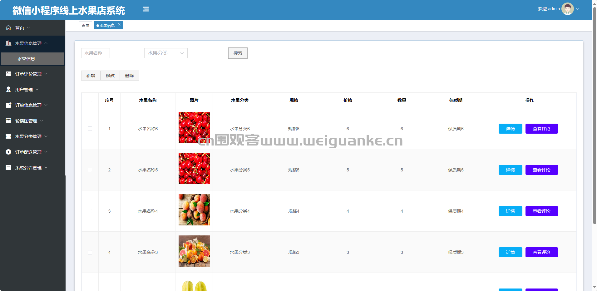 水果信息管理:新增、修改、删除、查询水果详情及库存。