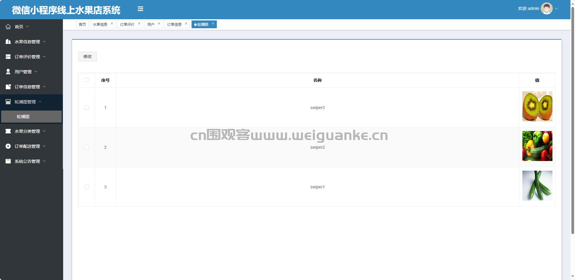 轮播图管理:新增、修改、删除、查看首页轮播图。
