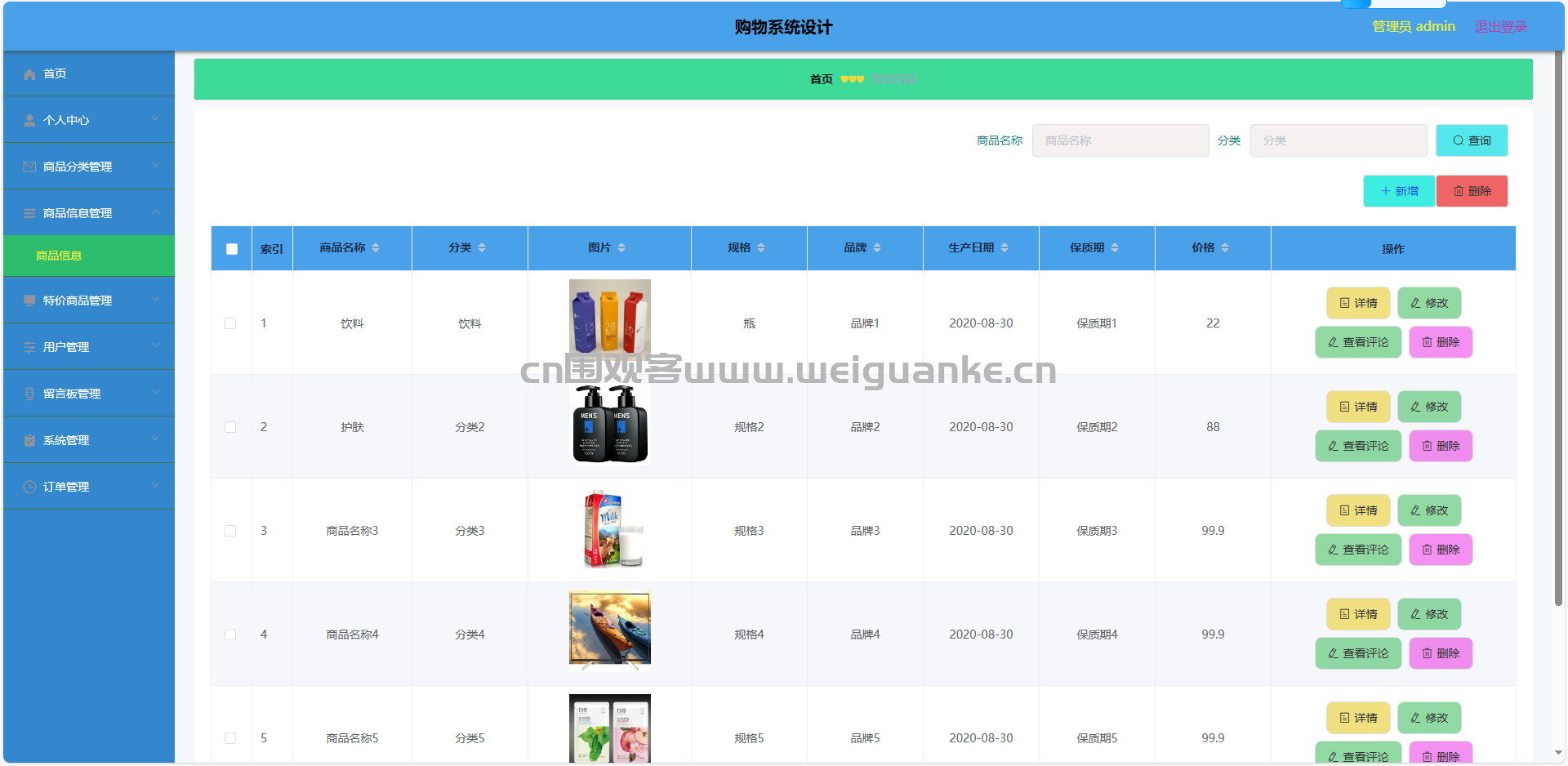 5.特价商品管理:查看、添加、编辑、删除商品信息和评论信息
