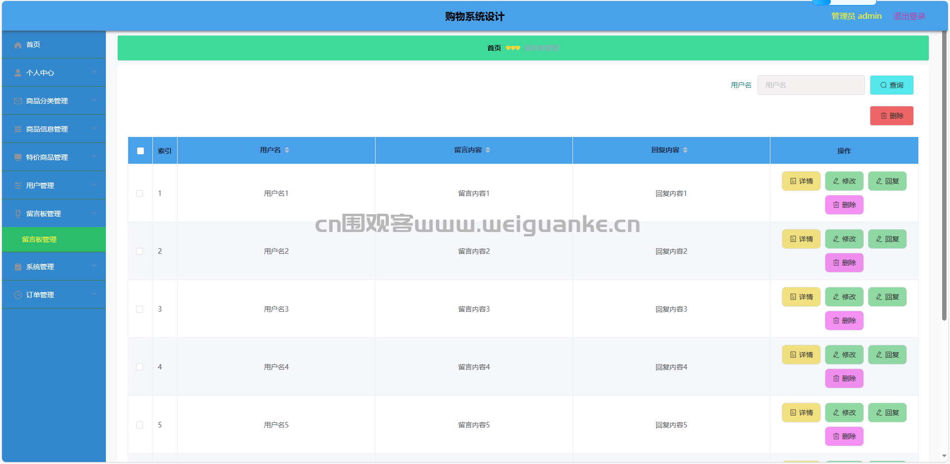 6.留言板管理:查看、回复、编辑、删除留言信息