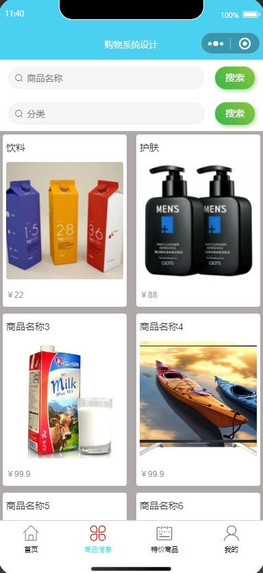 3.特价商品:查看商品信息进行评论,收藏,购买操作。