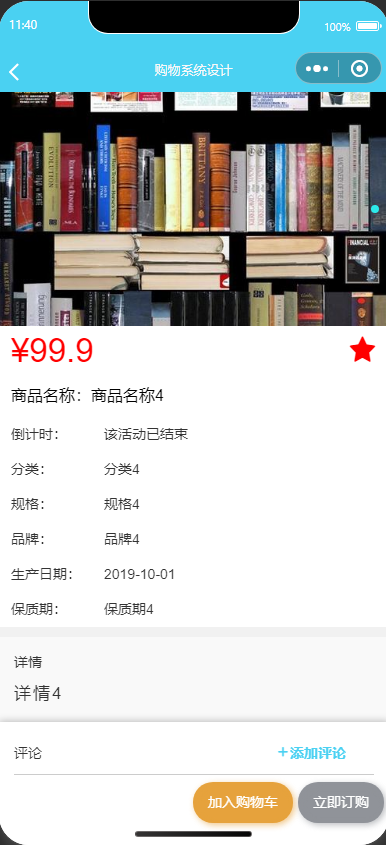 2.商品信息:查看商品信息进行评论,收藏,购买操作。