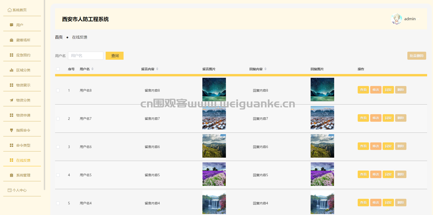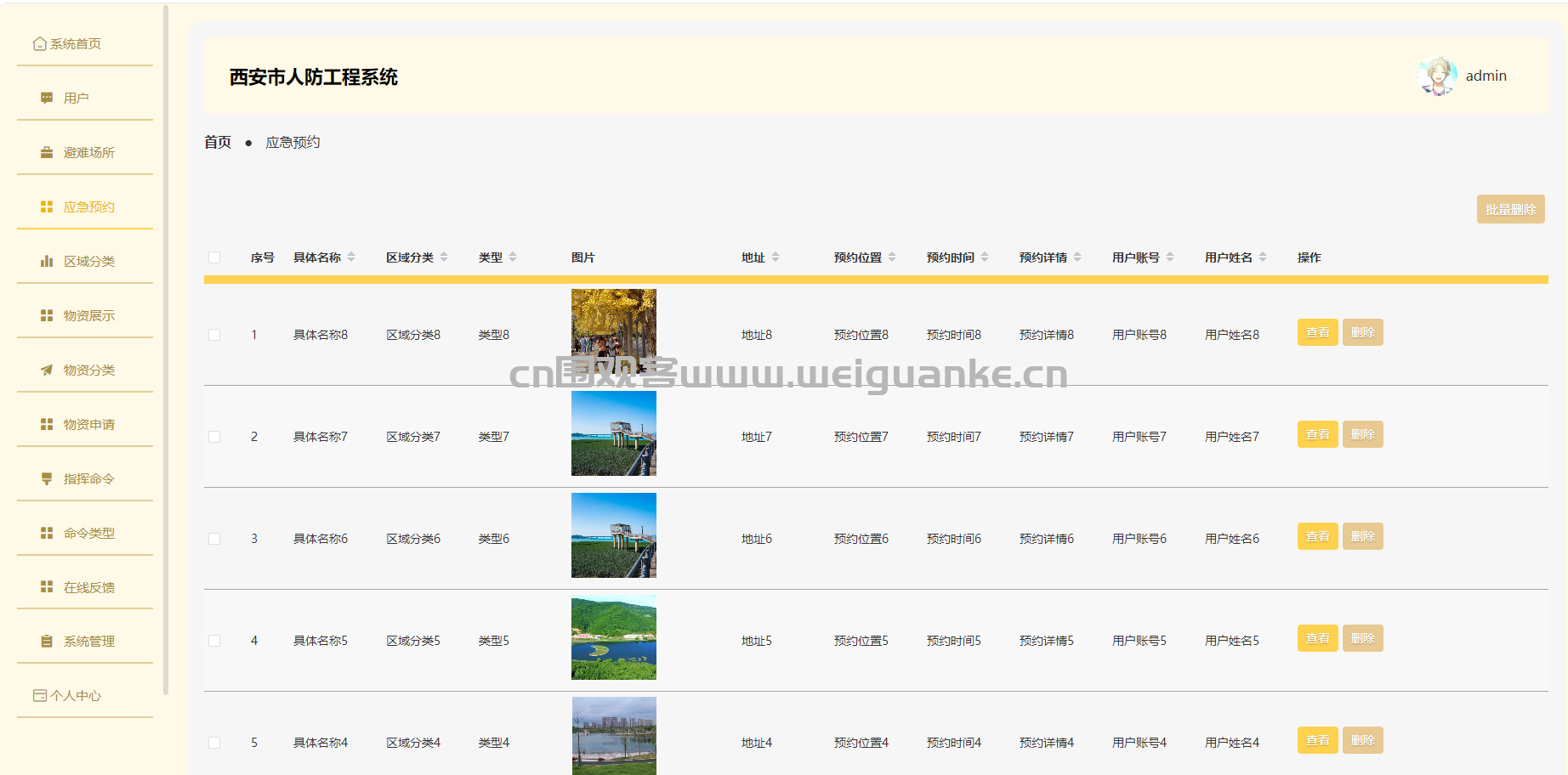 – 应急预约:查看和管理用户的应急预约信息,审批用户的预约申请,安排避难场所或应急服务的使用,确保紧急情况下的资源合理分配。