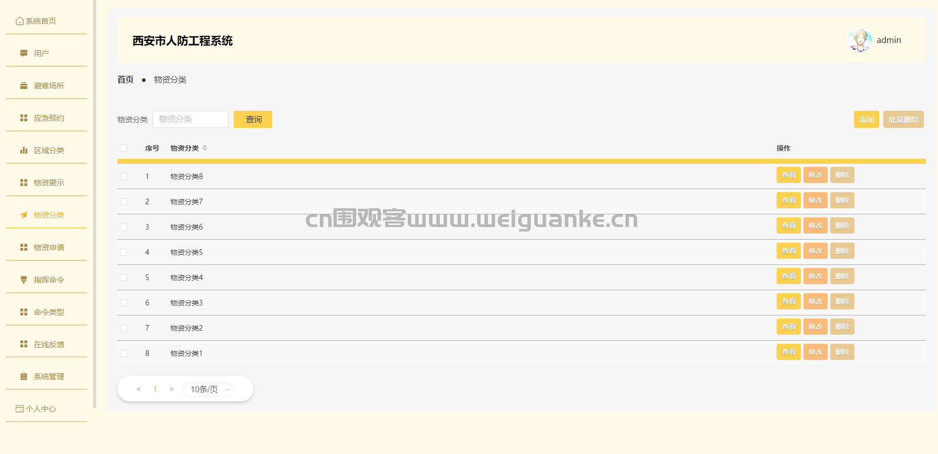– 物资分类:设置和管理物资的分类,方便用户和管理员快速查找和管理各类物资,提高物资管理的效率。