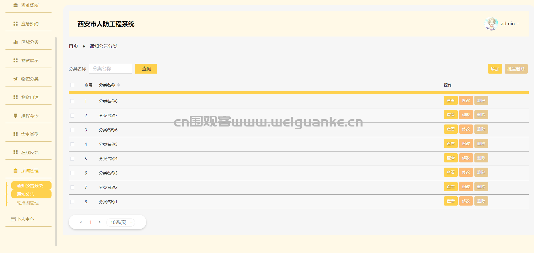 – 通知公告分类:设置和管理通知公告的分类,方便管理员根据不同的通知类型进行发布和管理,提高信息的可检索性。