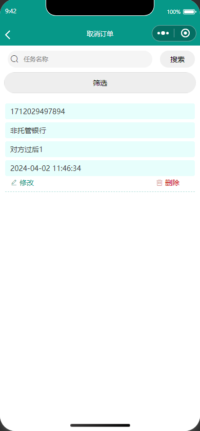 取消订单:对已接单任务进行取消操作。