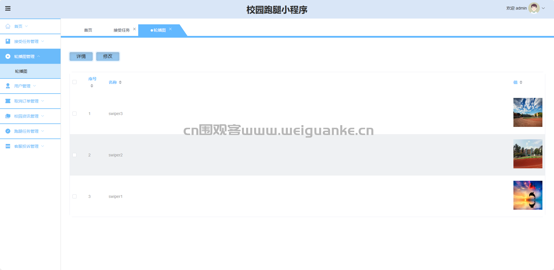 轮播图管理:新增、修改、删除、查询首页轮播图。
