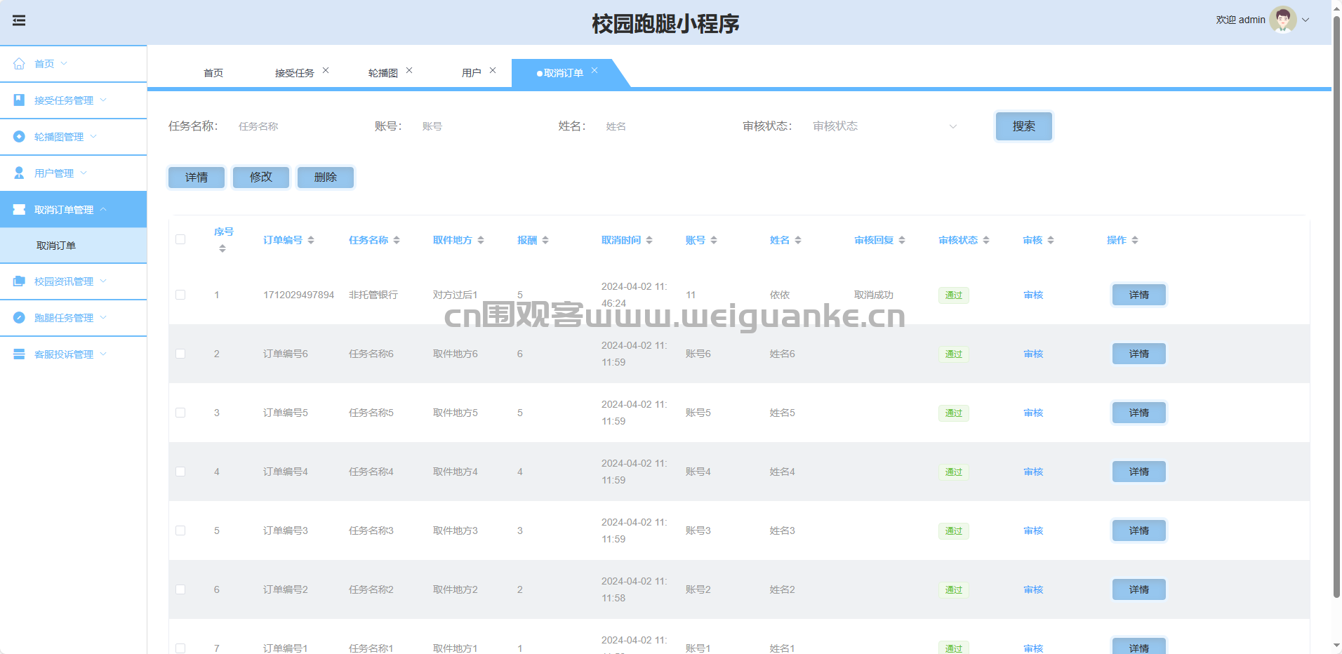 接受任务管理:查看、强制取消所有接单记录。
