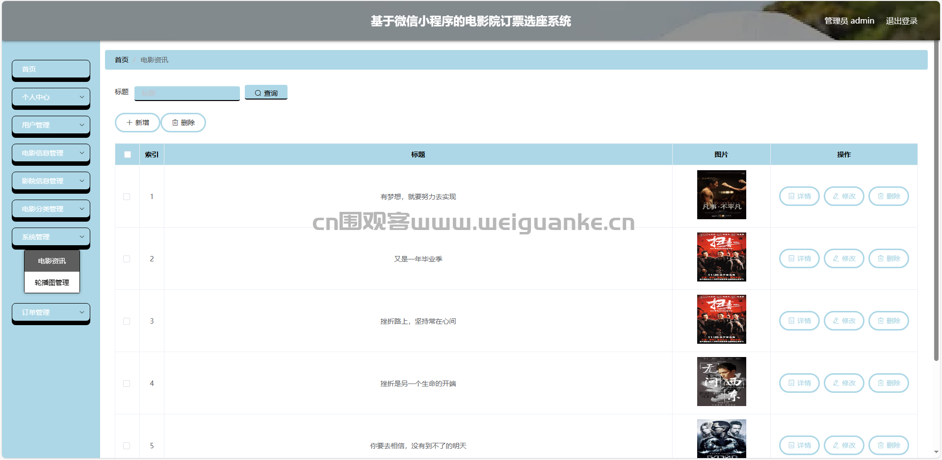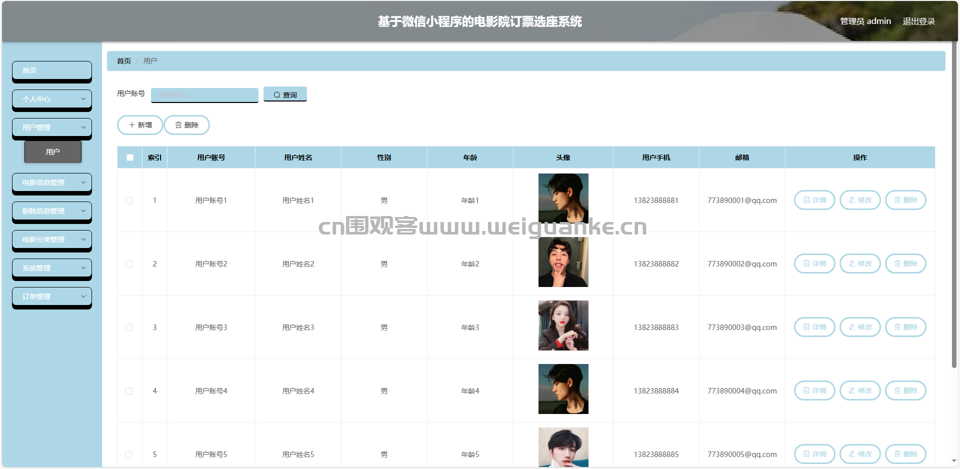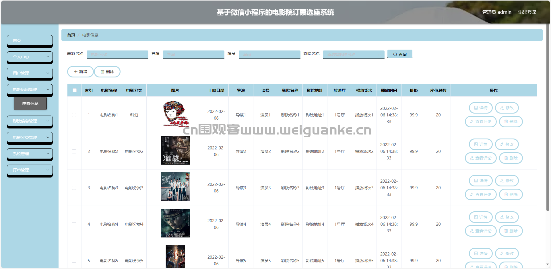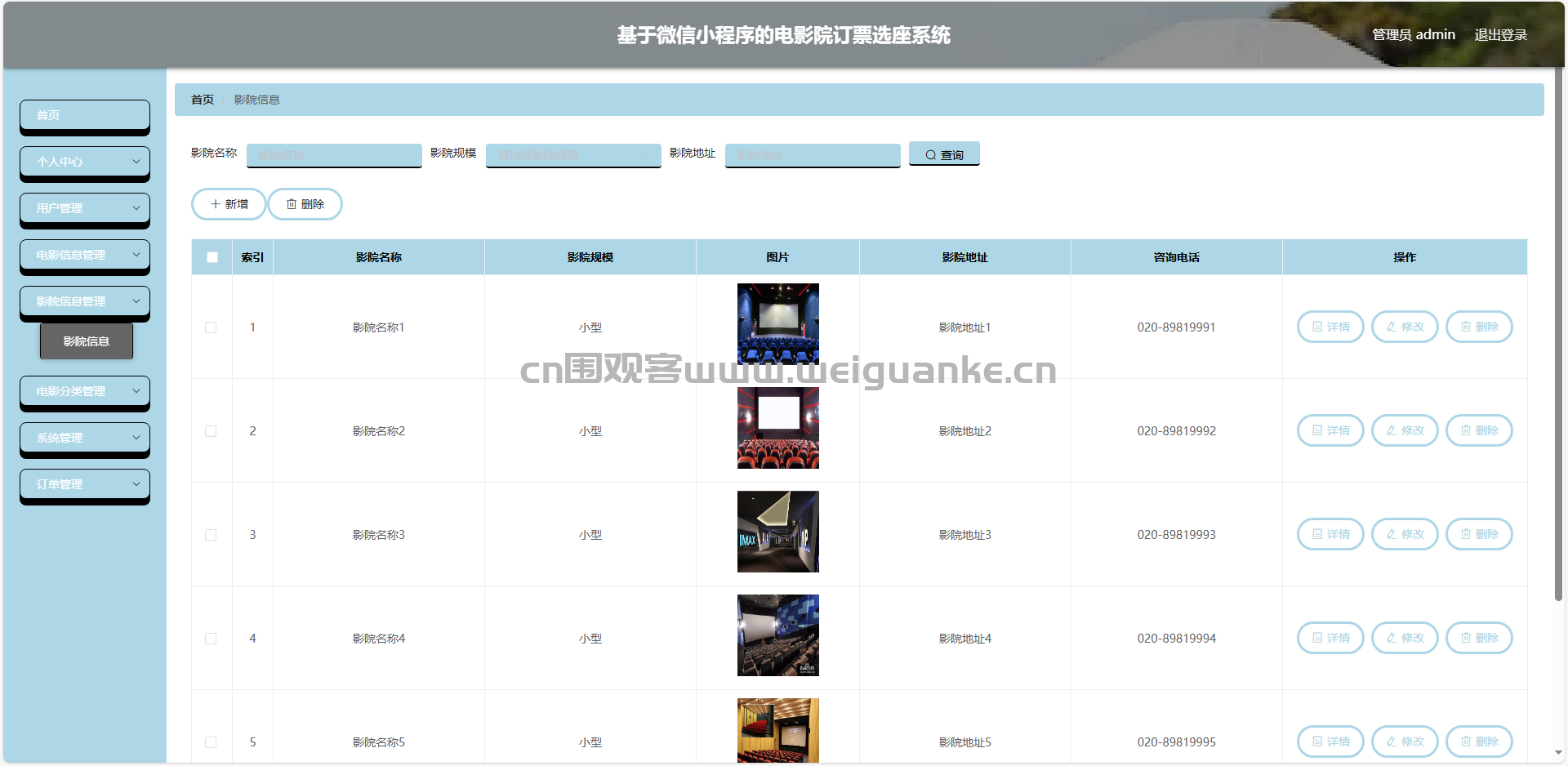 5.影院信息管理:查看、添加、编辑、删除影院信息