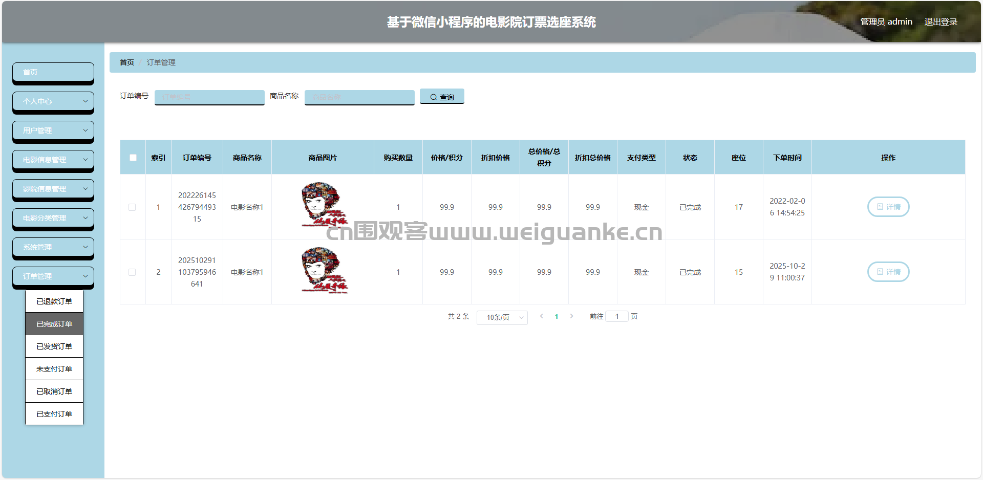 电影院订票选座系统-ssm vue mysql 微信小程序