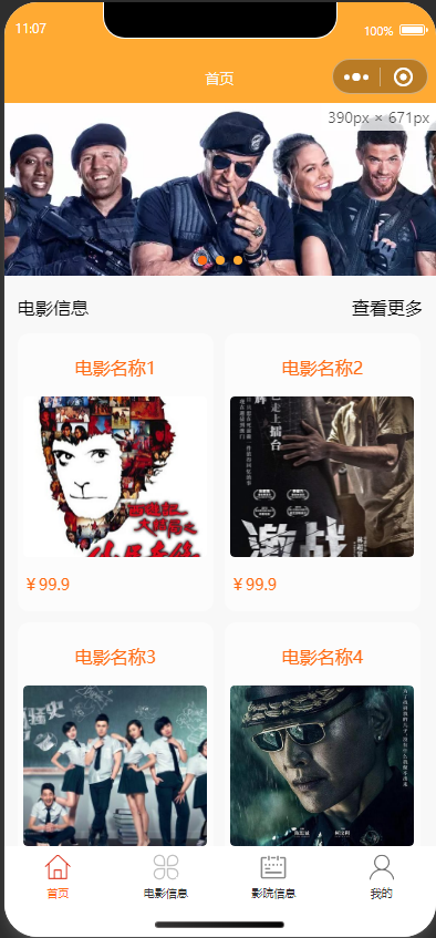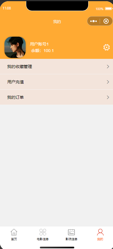 2.电影信息:查看电影信息进行预订,收藏操作。