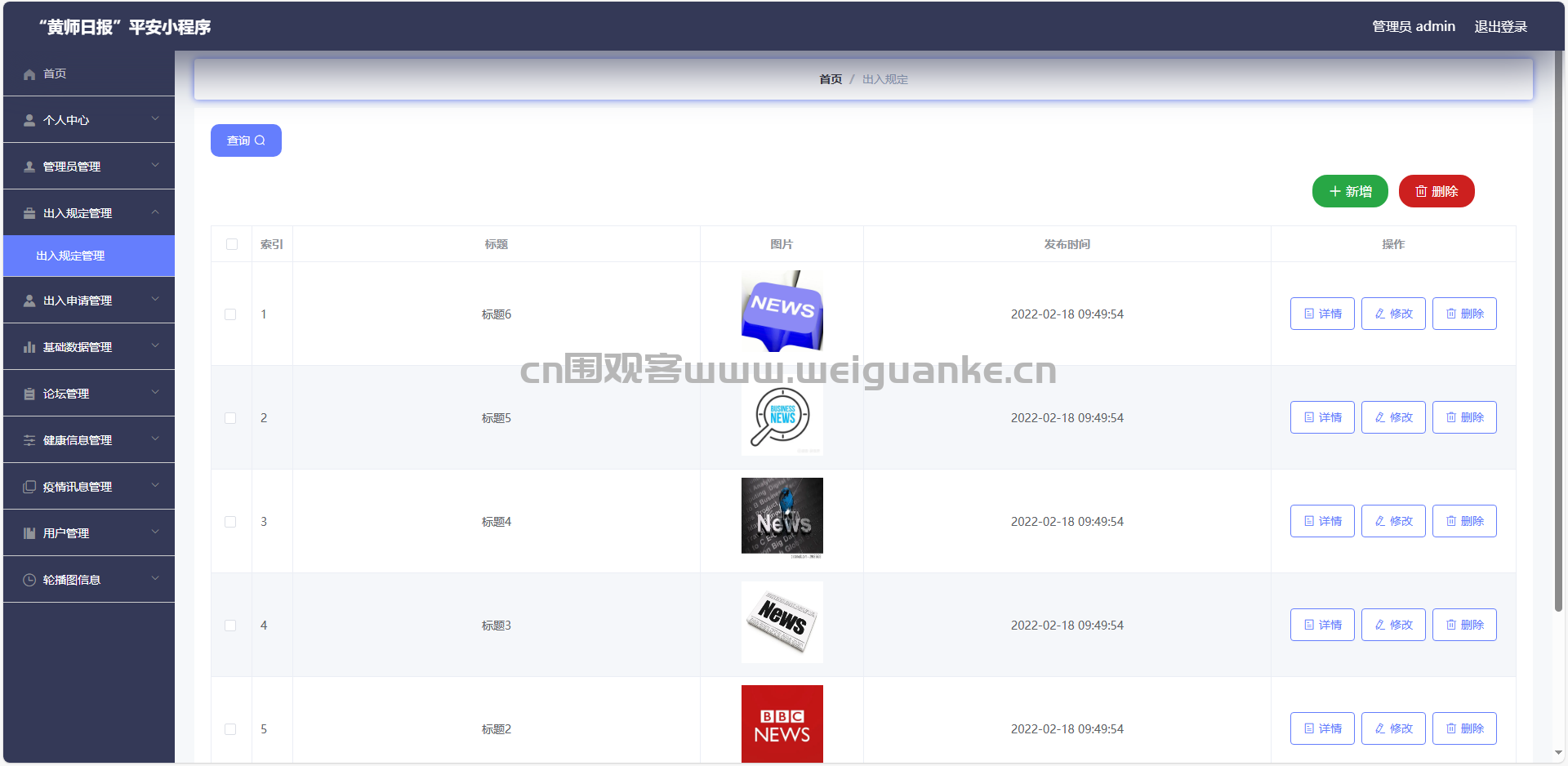 4.出入规定管理:查看、添加、编辑、删除出入规定信息