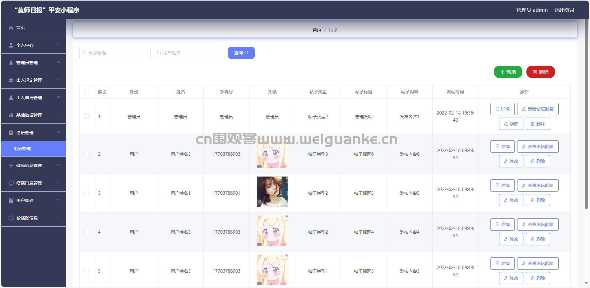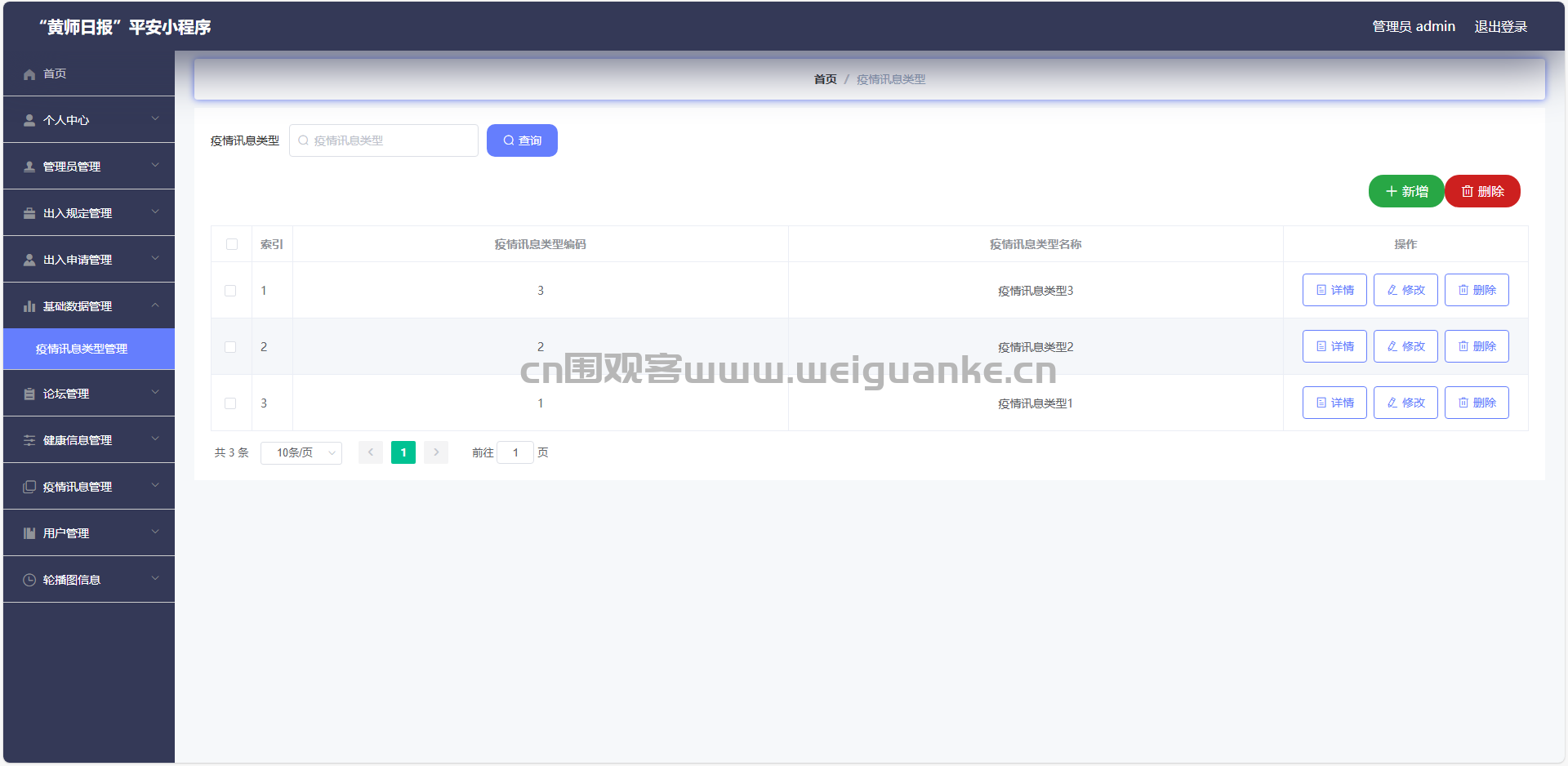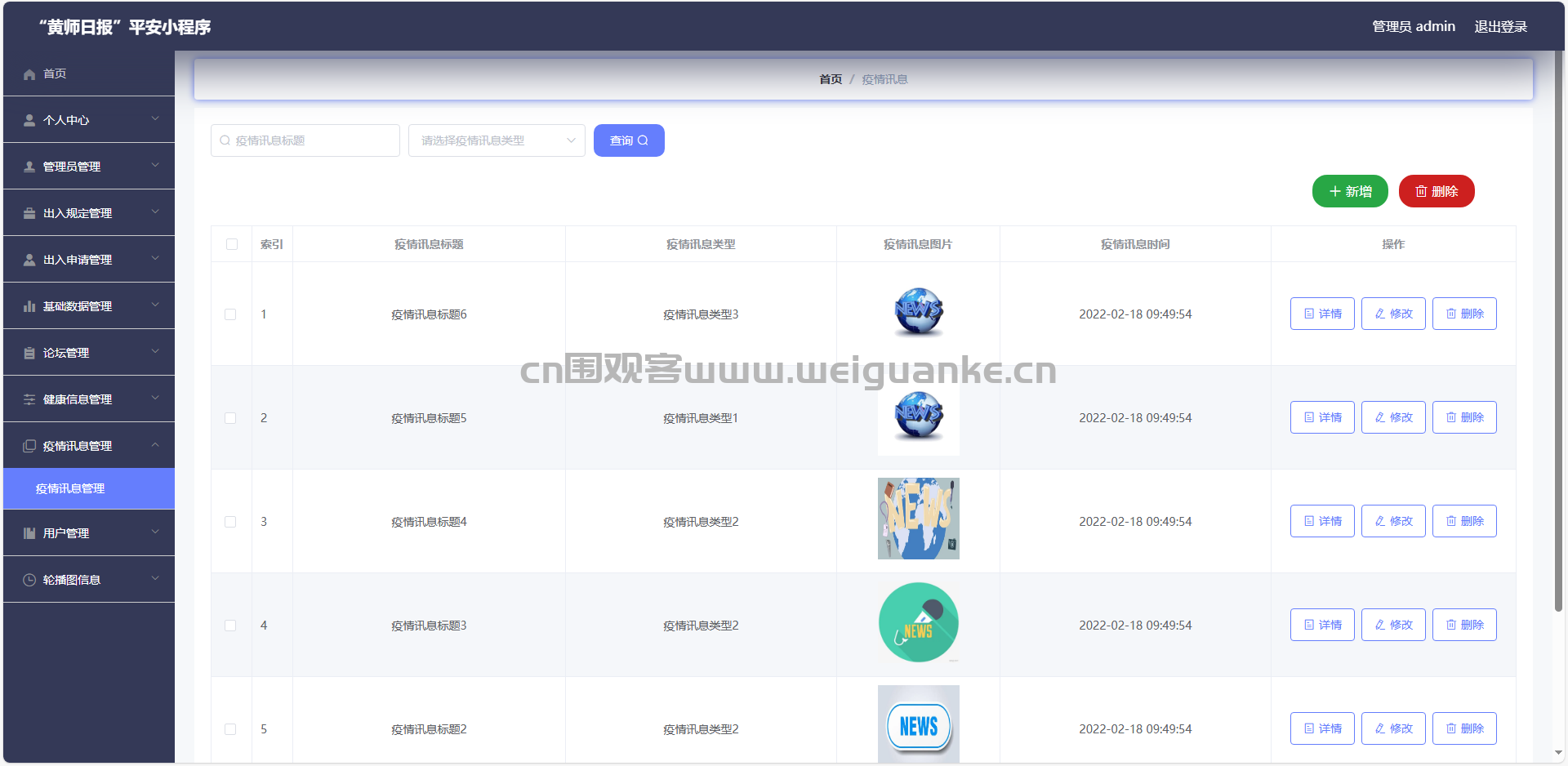 9.疫情讯息管理:查看、添加、编辑、删除疫情讯息信息