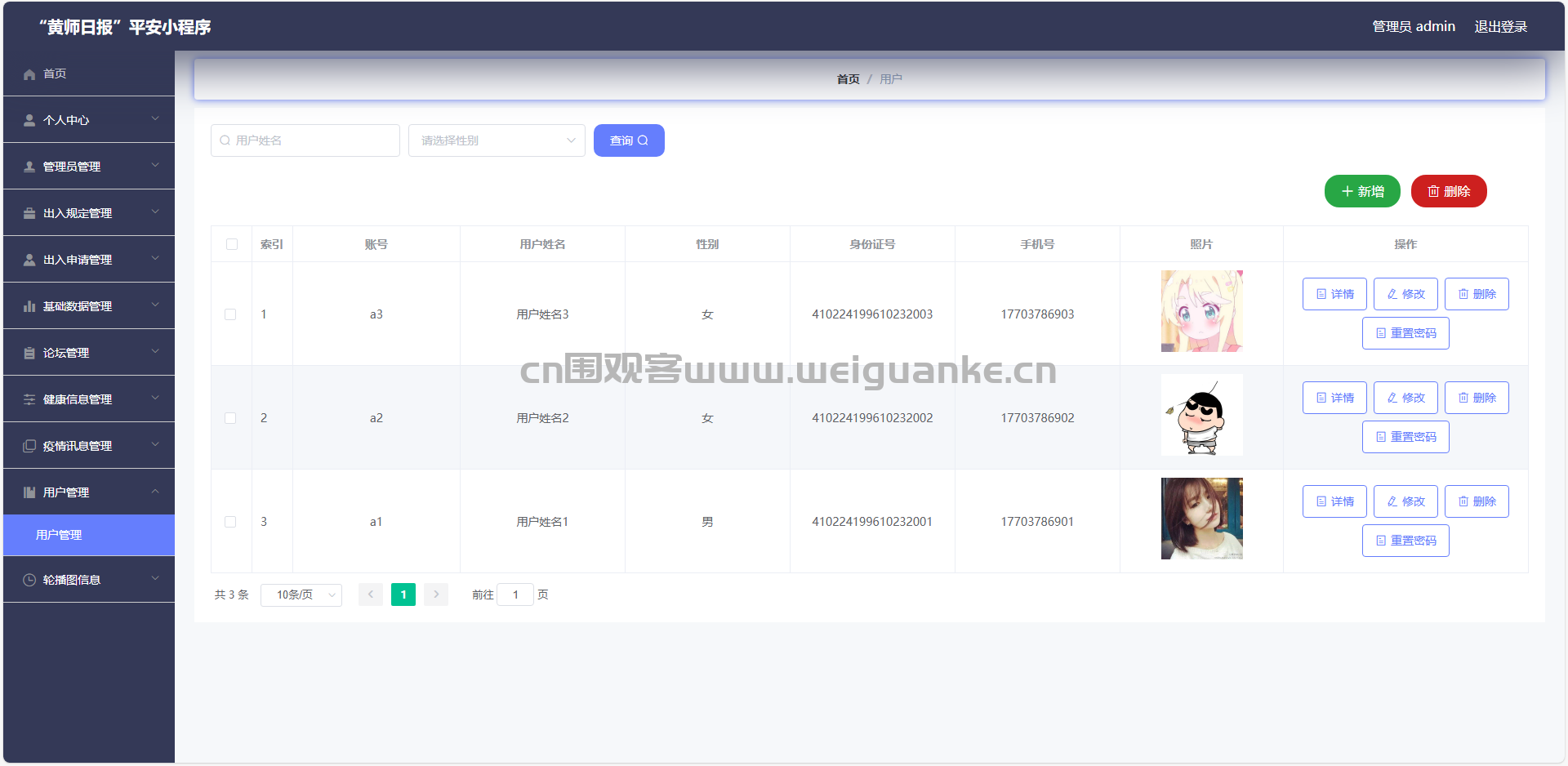 3.管理员管理:查看、添加、编辑、删除管理员信息