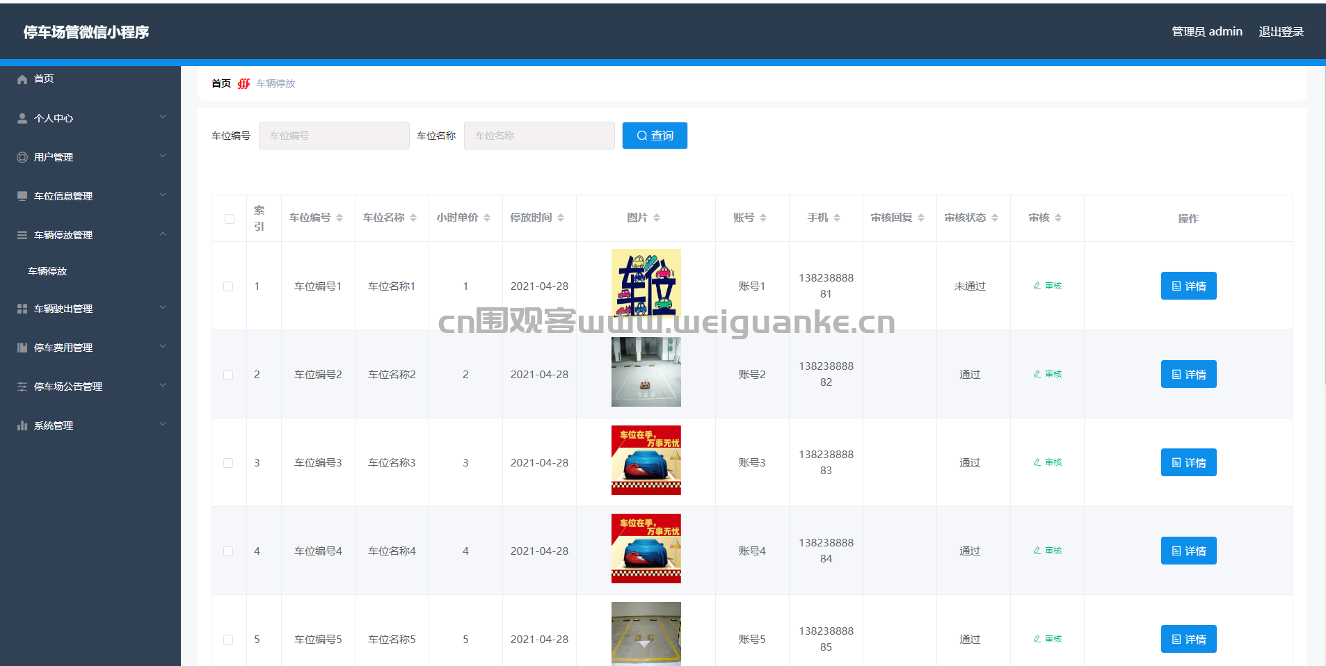 5.车辆停放管理:查看、审核车辆停放信息