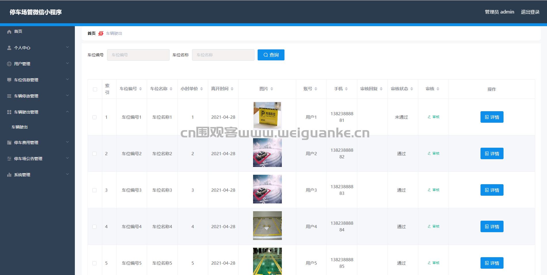 4.车辆驶出管理:查看、审核车辆驶出信息