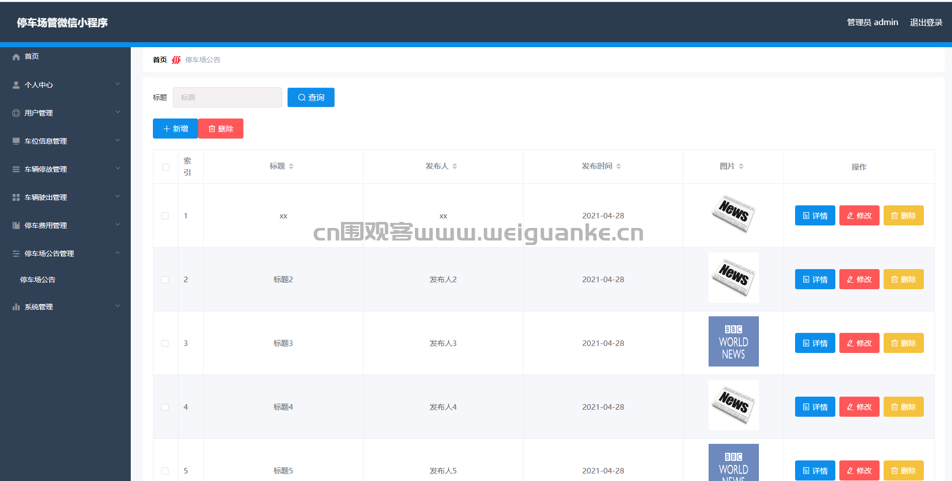 7.公告管理:查看、添加、编辑、删除公告信息