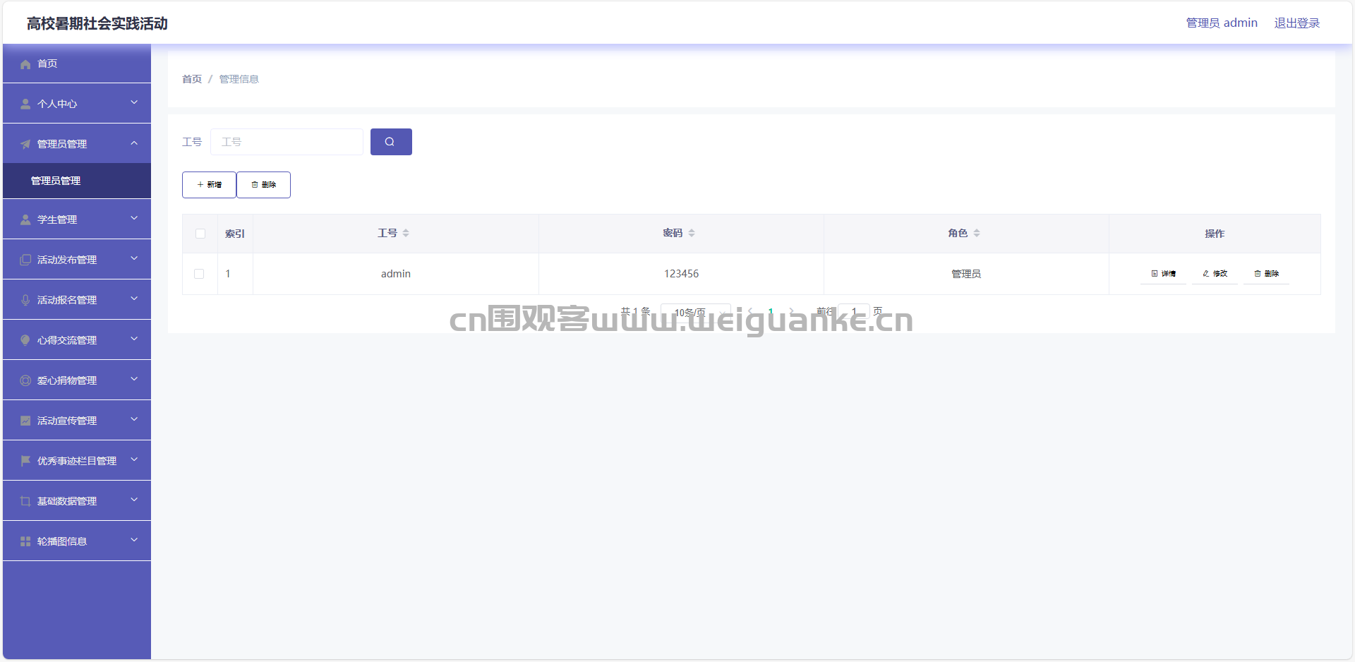 2.管理员管理:查看、添加、编辑、删除管理员信息