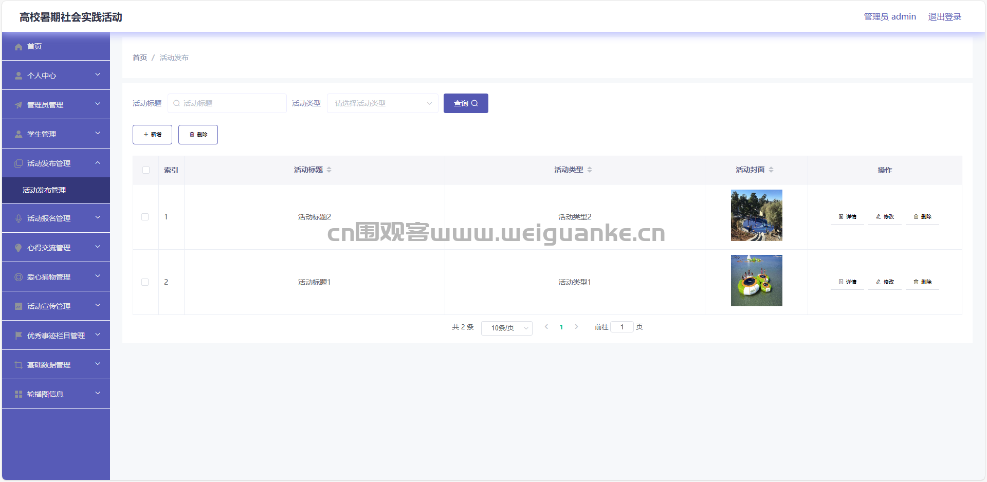8.活动发布管理:查看、添加、编辑、删除活动发布信息