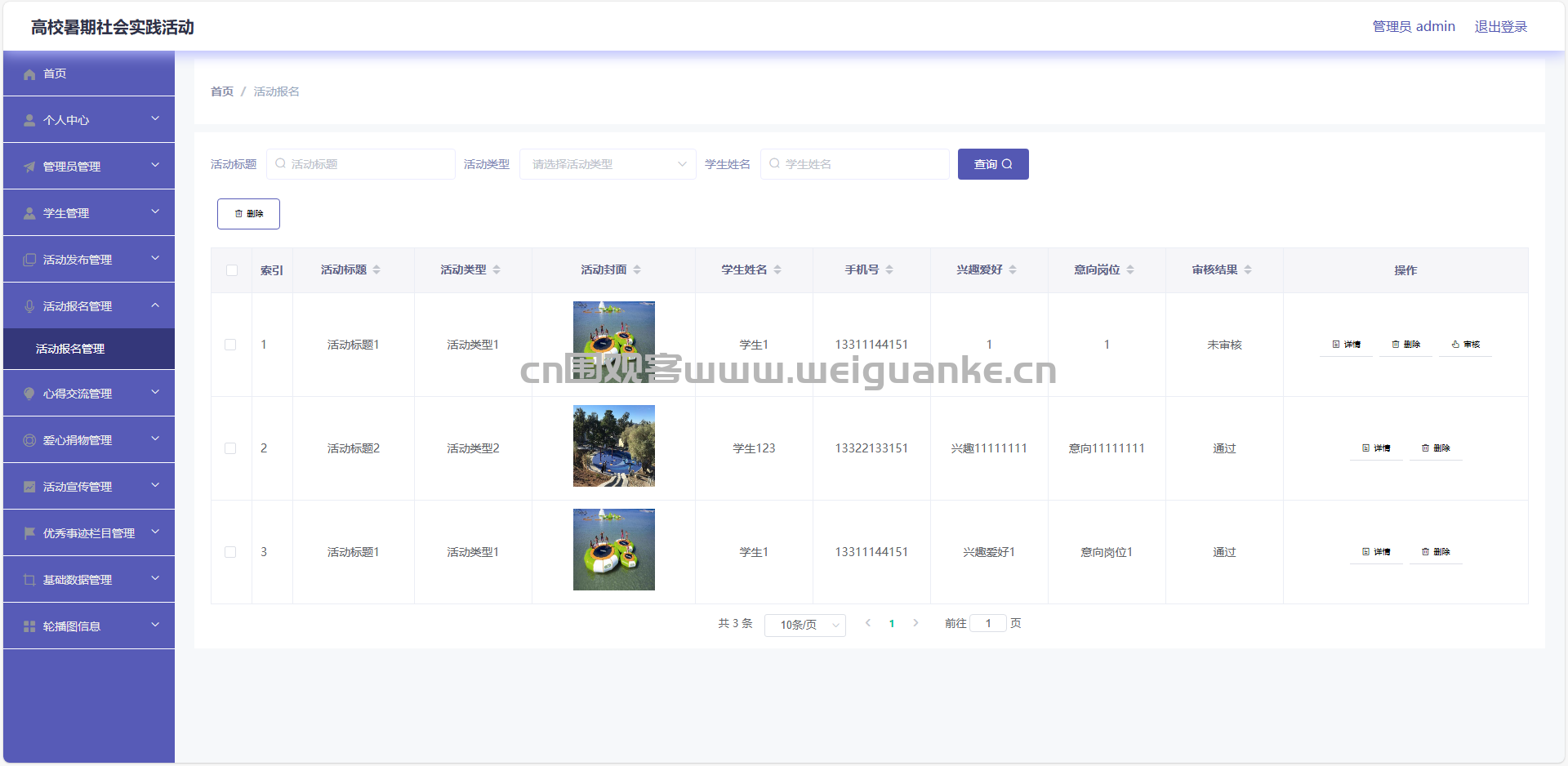 高校暑期社会实践活动系统-ssm vue mysql 微信小程序