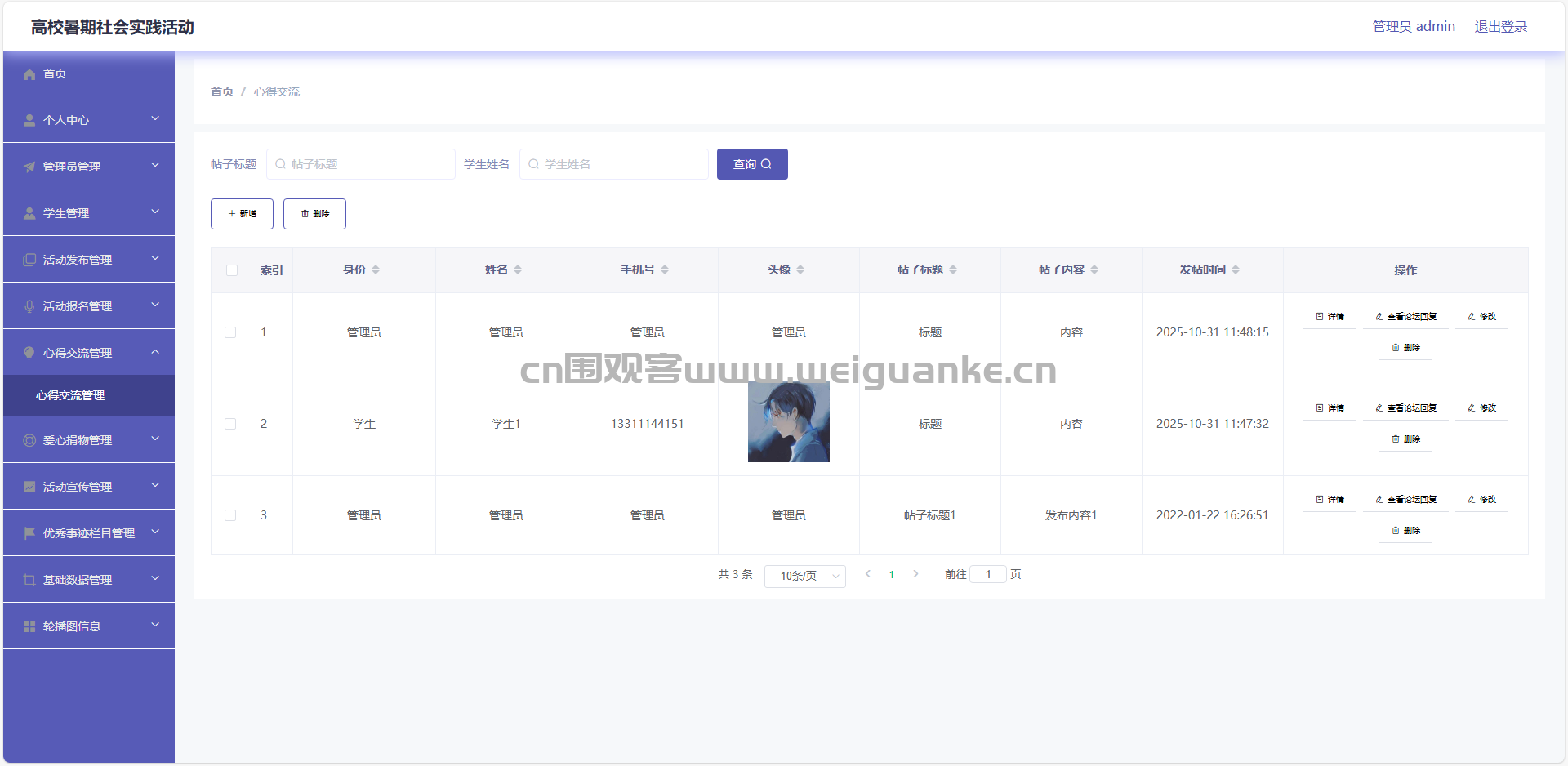10.心得交流管理:查看、添加、编辑、删除心得交流信息