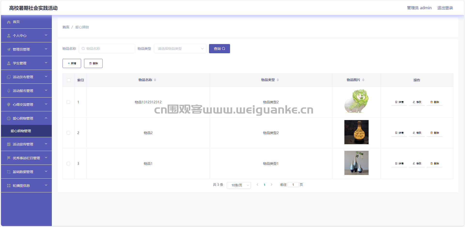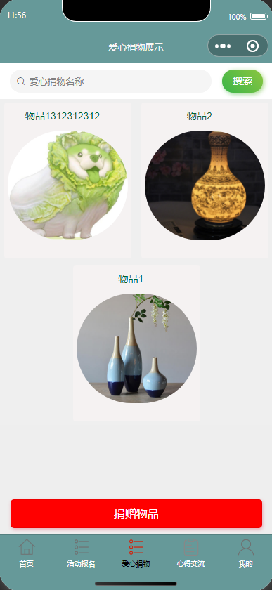 11.爱心捐物管理:查看、添加、编辑、删除爱心捐物信息