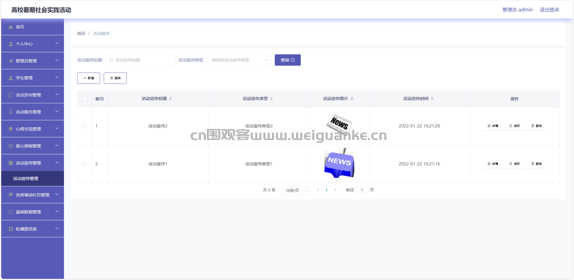 12.活动宣传管理:查看、添加、编辑、删除活动宣传信息