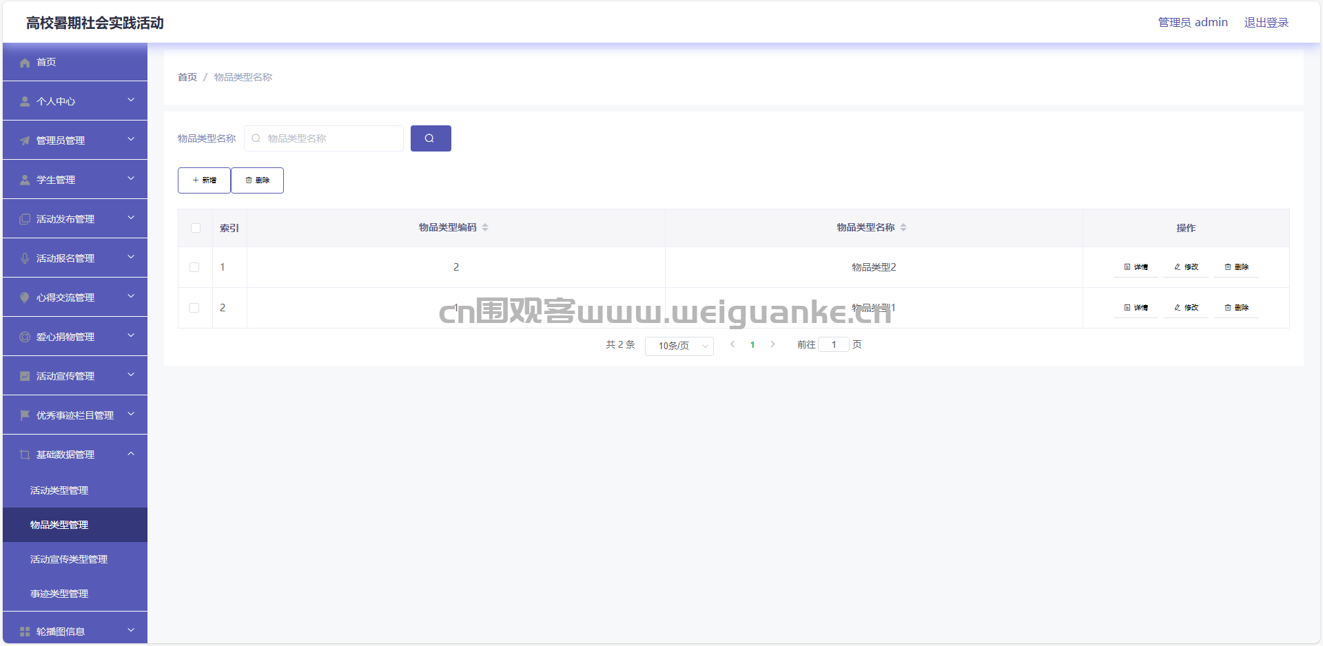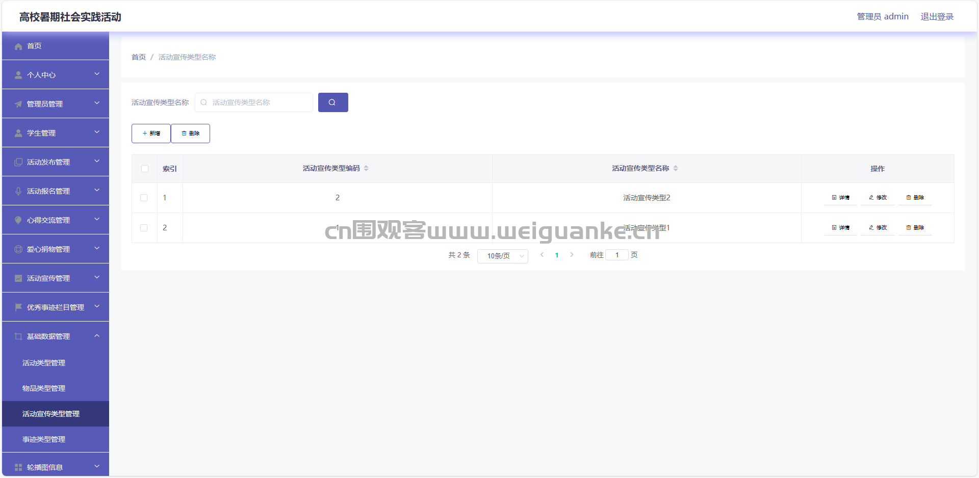 6.活动宣传类型管理:查看、添加、编辑、删除活动宣传类型信息
