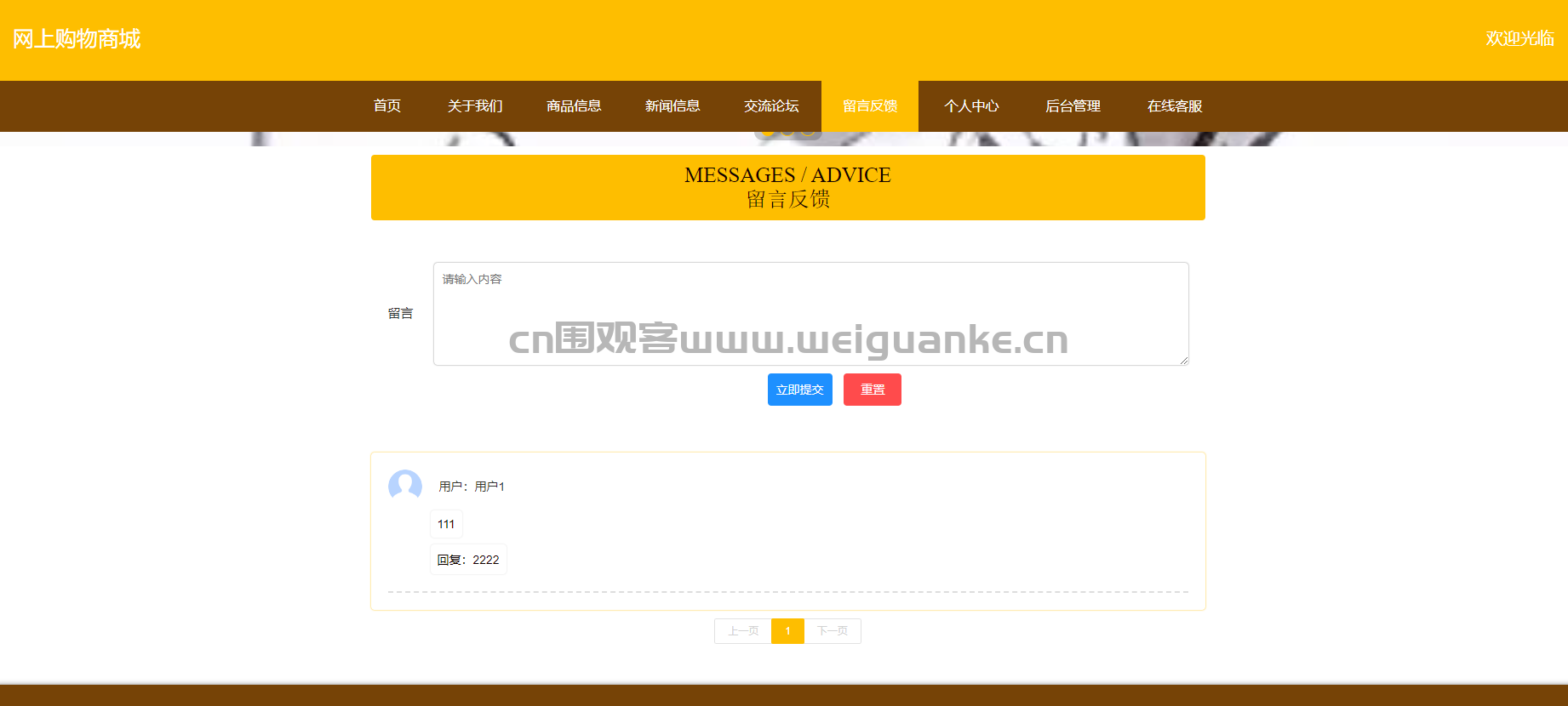 – 功能描述:用户可以在这里提交留言或反馈,管理员会回复用户的留言。