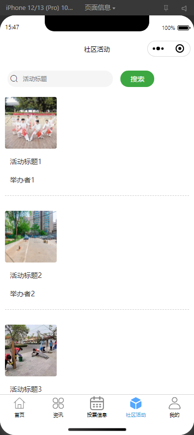 社区活动管理:新增、修改、删除、查询活动信息。