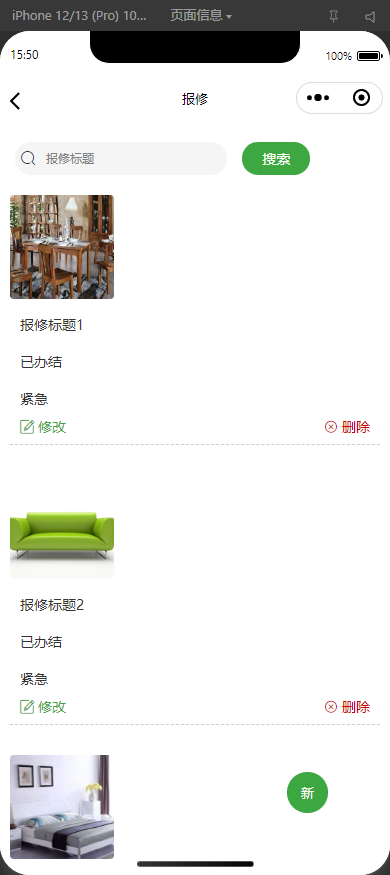 报事报修:新增、查看、删除维修申请。