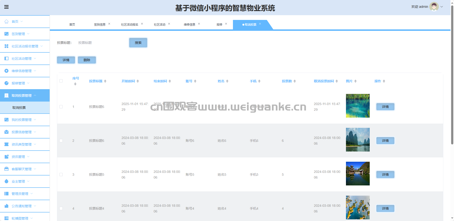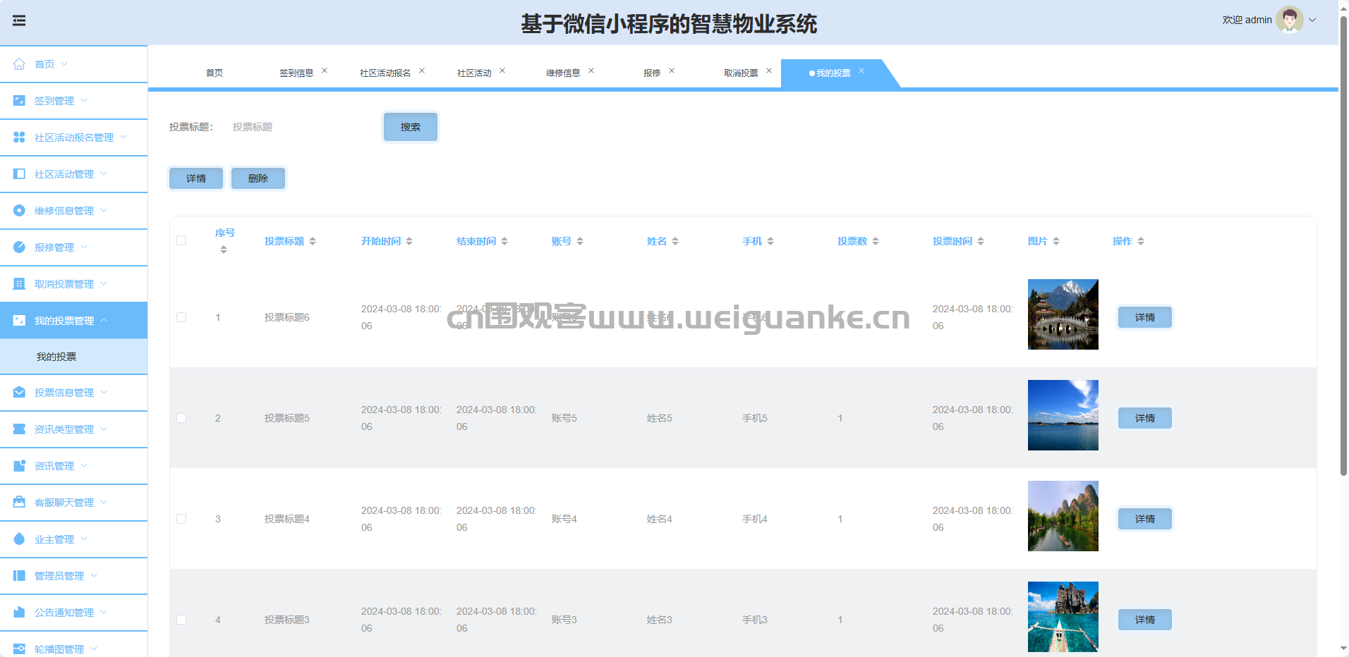我的投票管理:查看业主投票明细。
