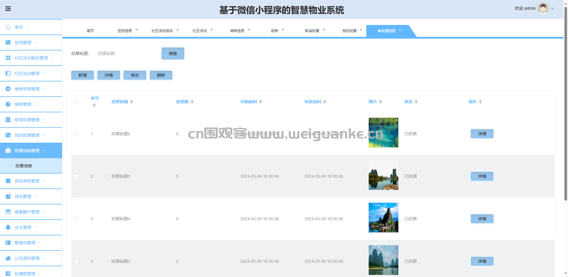 投票信息管理:新增、修改、删除、查询投票议题。