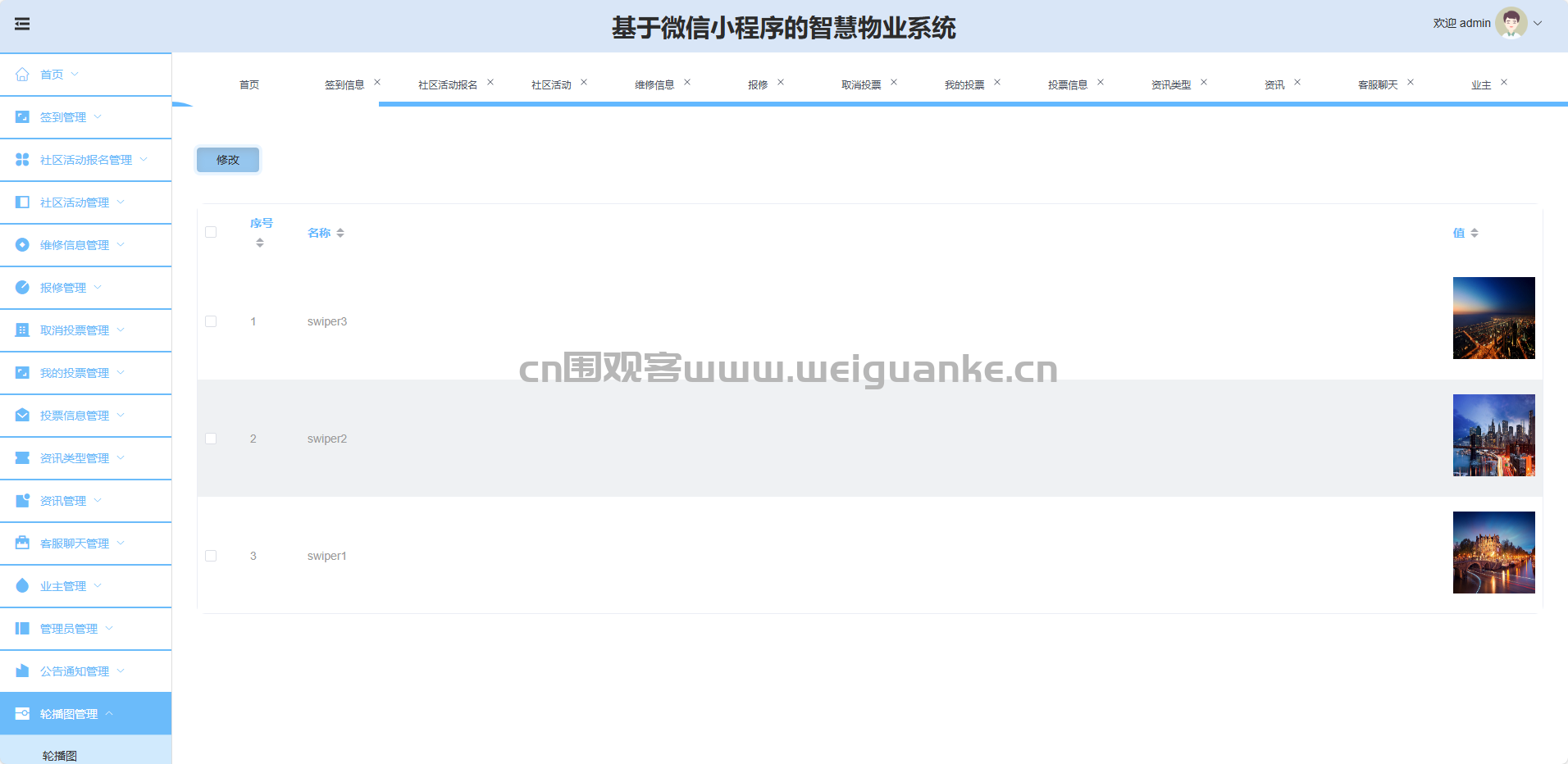 轮播图管理:新增、修改、删除、查询首页轮播图。