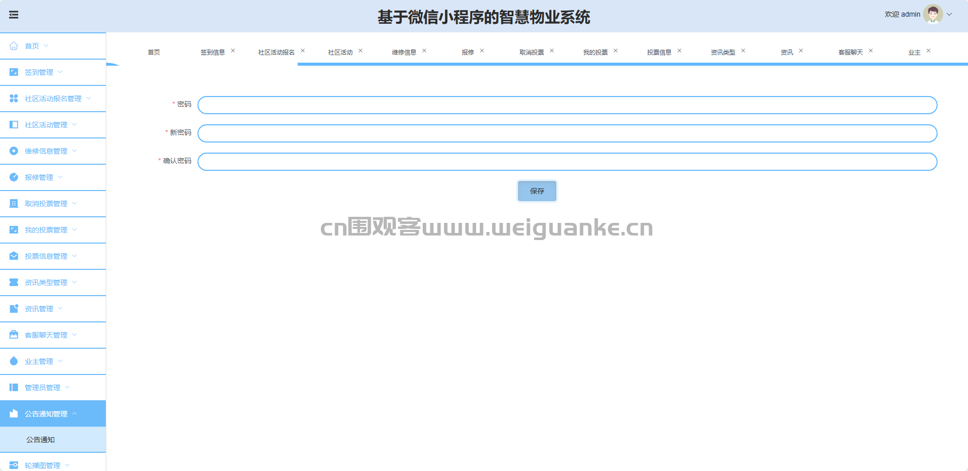 基于SpringBoot+Vue+微信小程序的“智慧物业”系统,实现业主信息、公告资讯、投票决策、社区活动、报事报修、客服沟通及签到积分全流程线上管理,提升物业服务数字化与业主参与度。