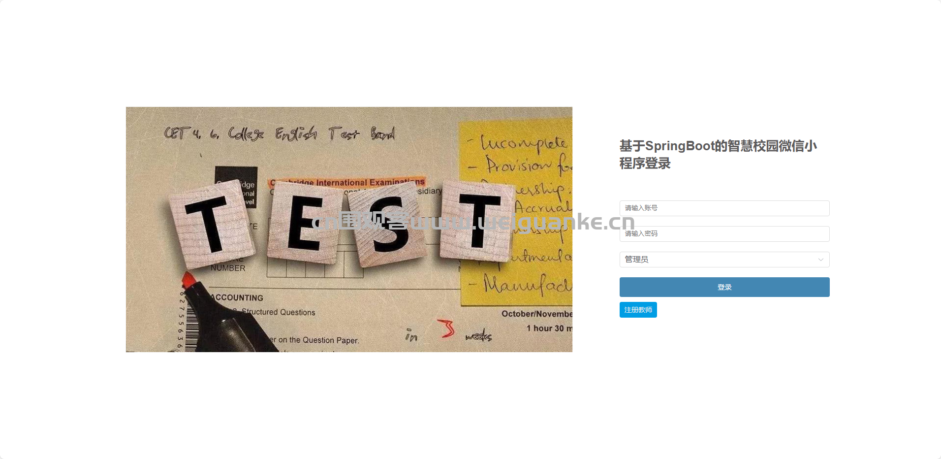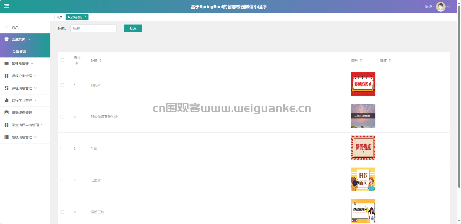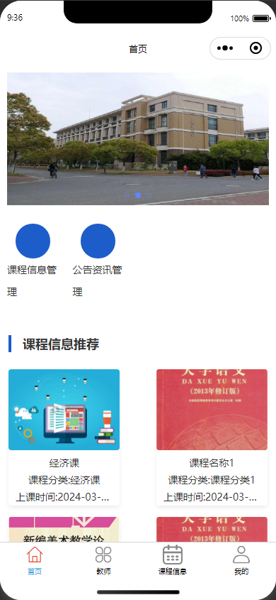 基于SpringBoot+Vue+微信小程序的“智慧校园”一体化平台,集成课程中心、成绩管理、请假审批、公告资讯与收藏功能,实现学生选课、教师授课、管理员统筹的多端协同数字化校园服务。