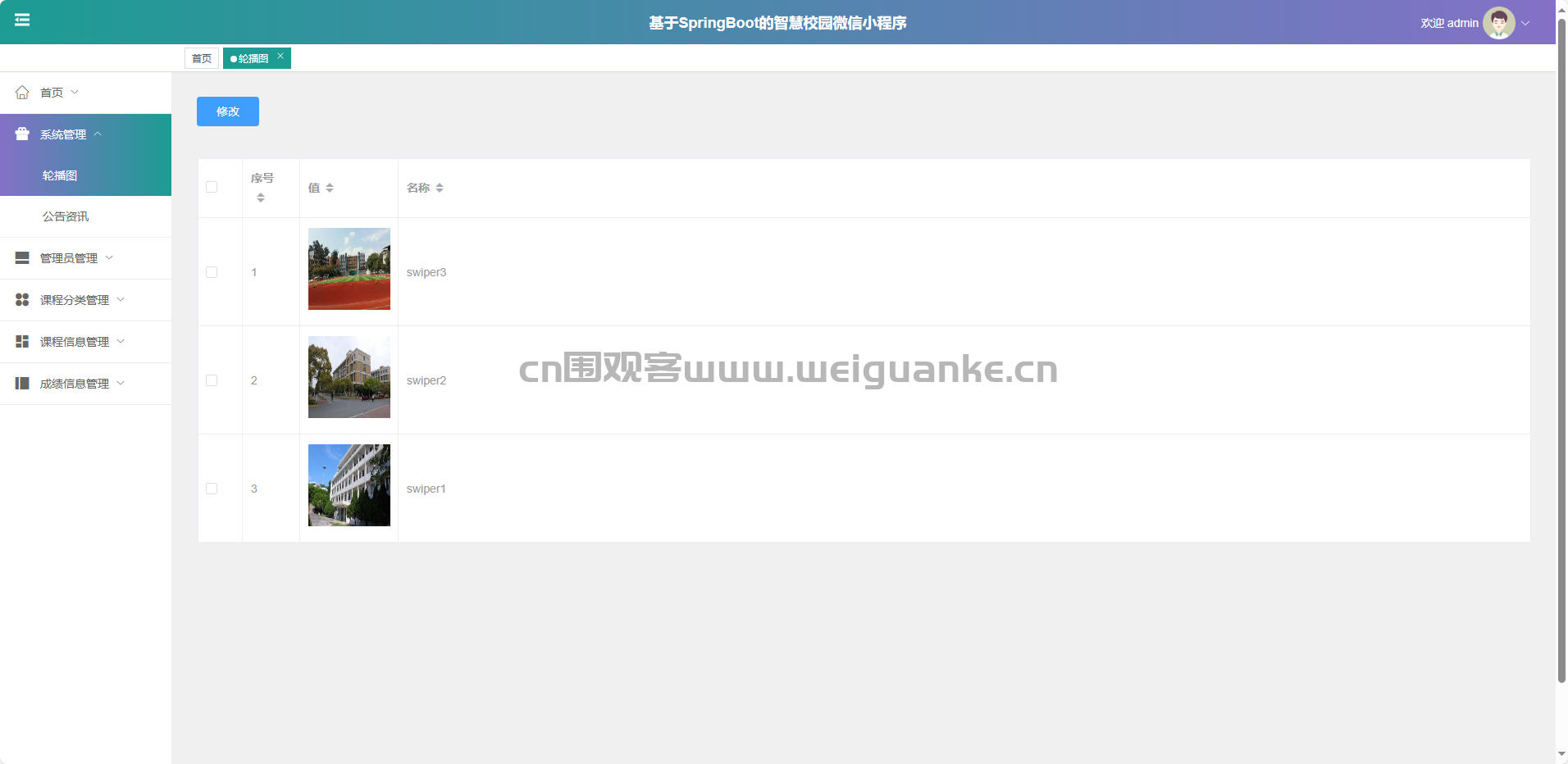 系统管理-轮播图:新增、修改、删除、查询首页轮播图。
